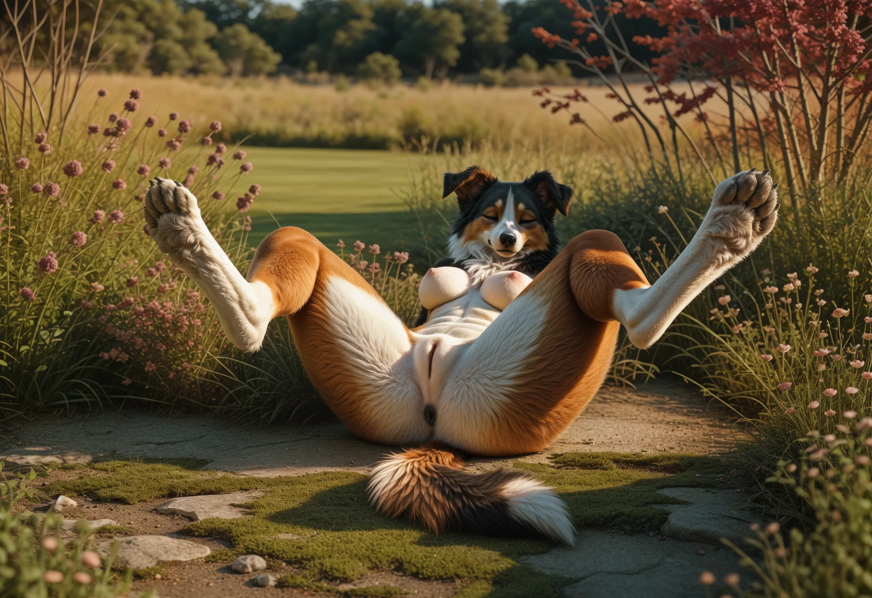 Collie Beauty Lounging In Field Spreading Legs Exposing Pink Innie Pus | Yiff Party