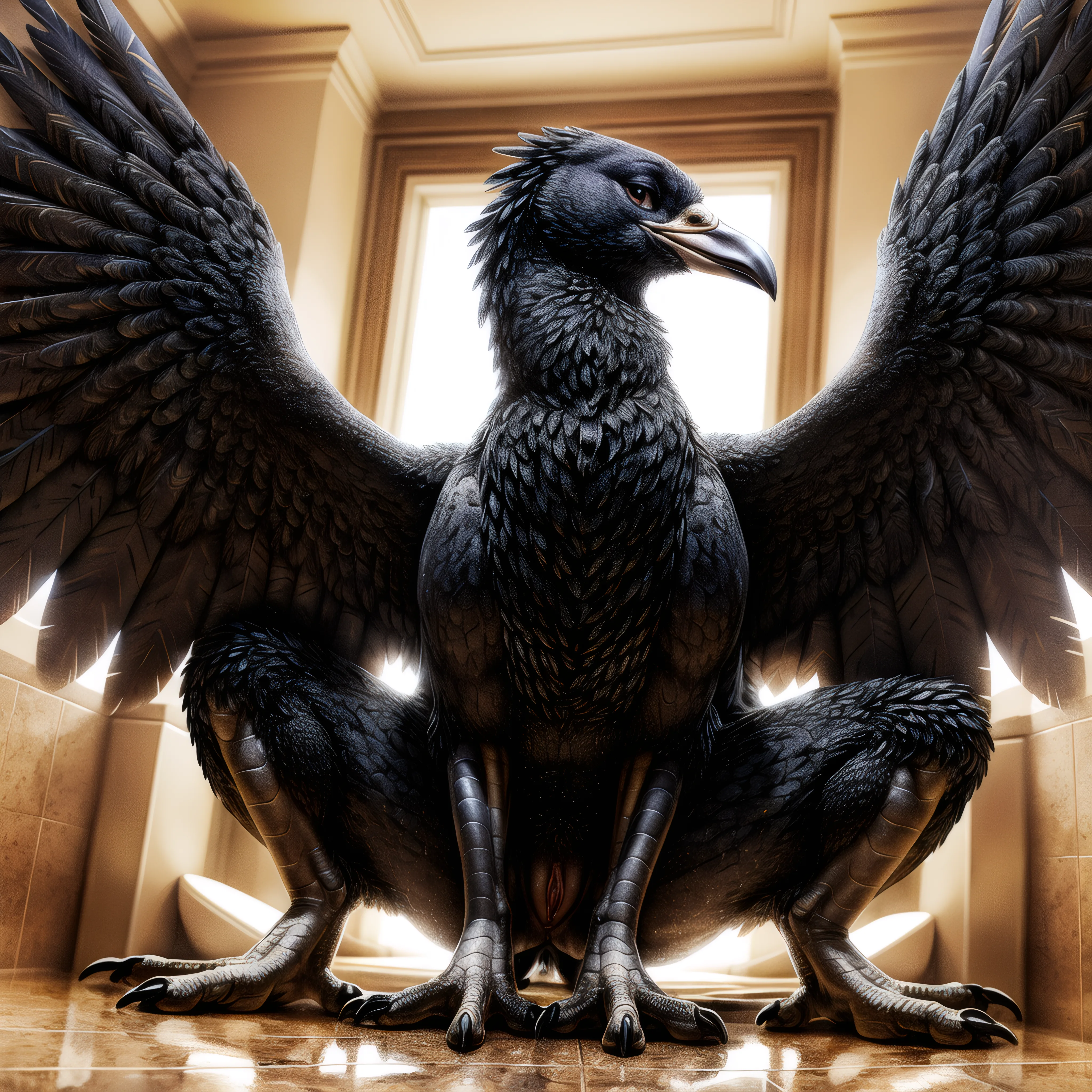 Crouching Crow Girl Spreads Feathered Wings And Talons | Yiff Party
