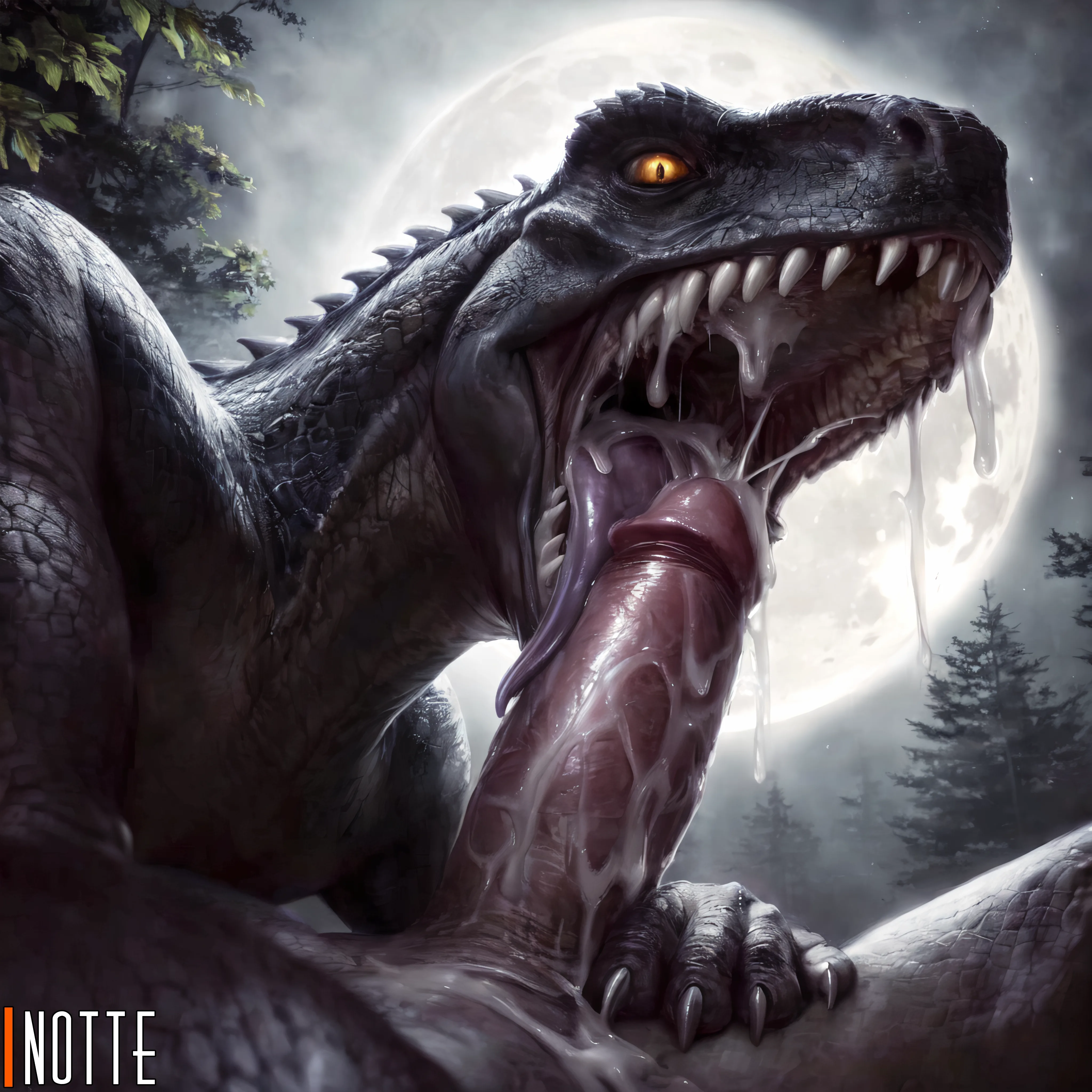 Cum Dripping From Dino'S Dick In Moonlit Forest | Yiff Party