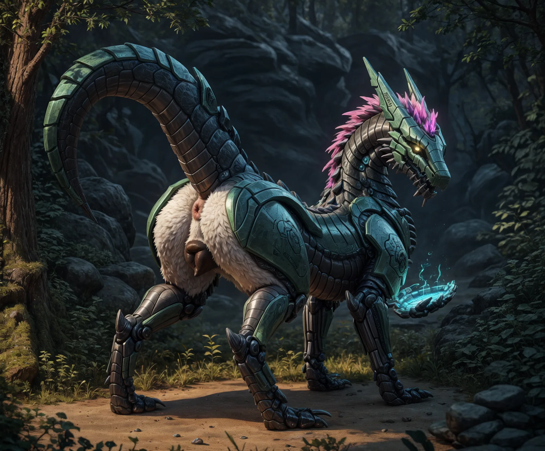 Cybernetic Dragoness Presents Glowing Pink Pussy In Sunlit Woods | Yiff Party
