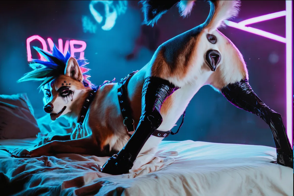 Cybernetic Vixen Displays Enhanced Anatomy On Leather Bedspread | Yiff Party