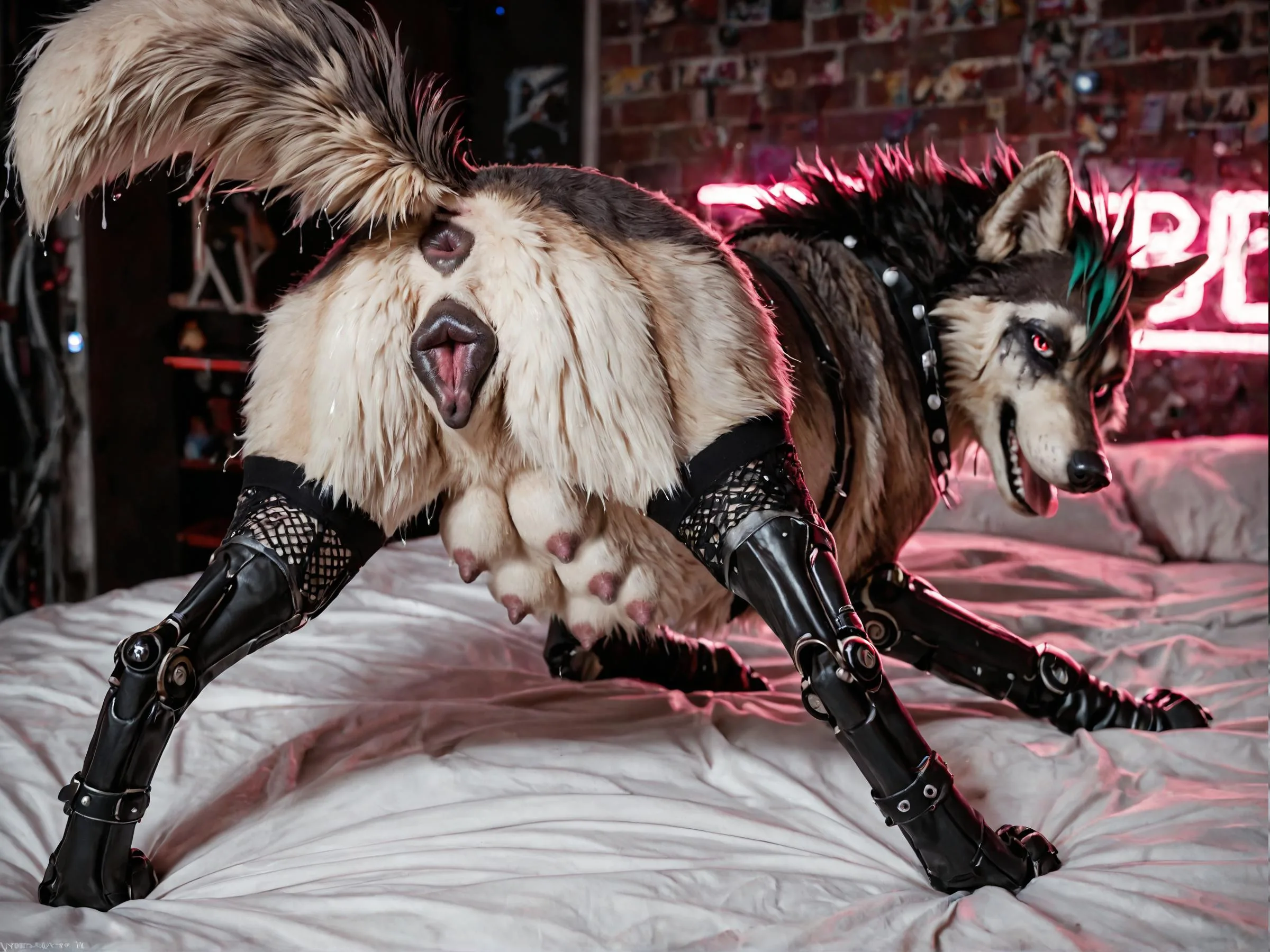 Cyberpunk Canine Cutie Presents Anatomically Correct Pussy On Bed | Yiff Party