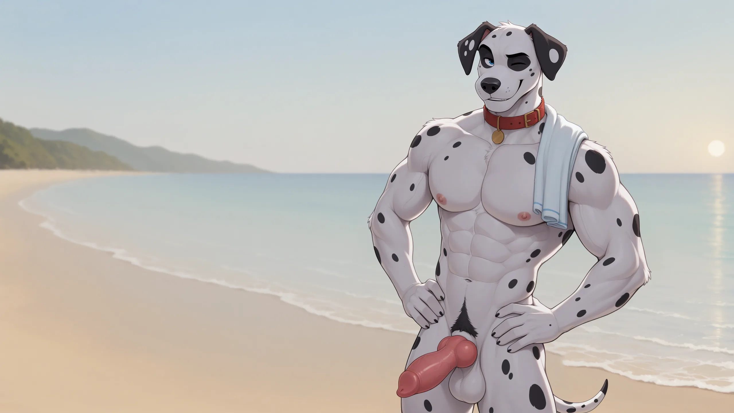 Dalmatian Anthro Dog Showing Off Big Balls And Veiny Penis On Beach | Yiff Party