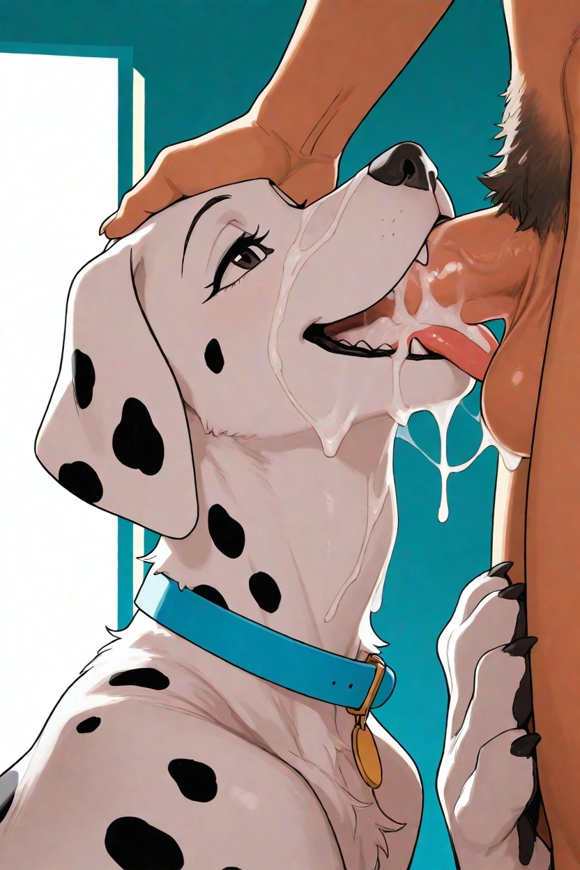 Dalmatian Perdita Fellating Human Male Oral Sex Cum In Mouth Dripping | Yiff Party