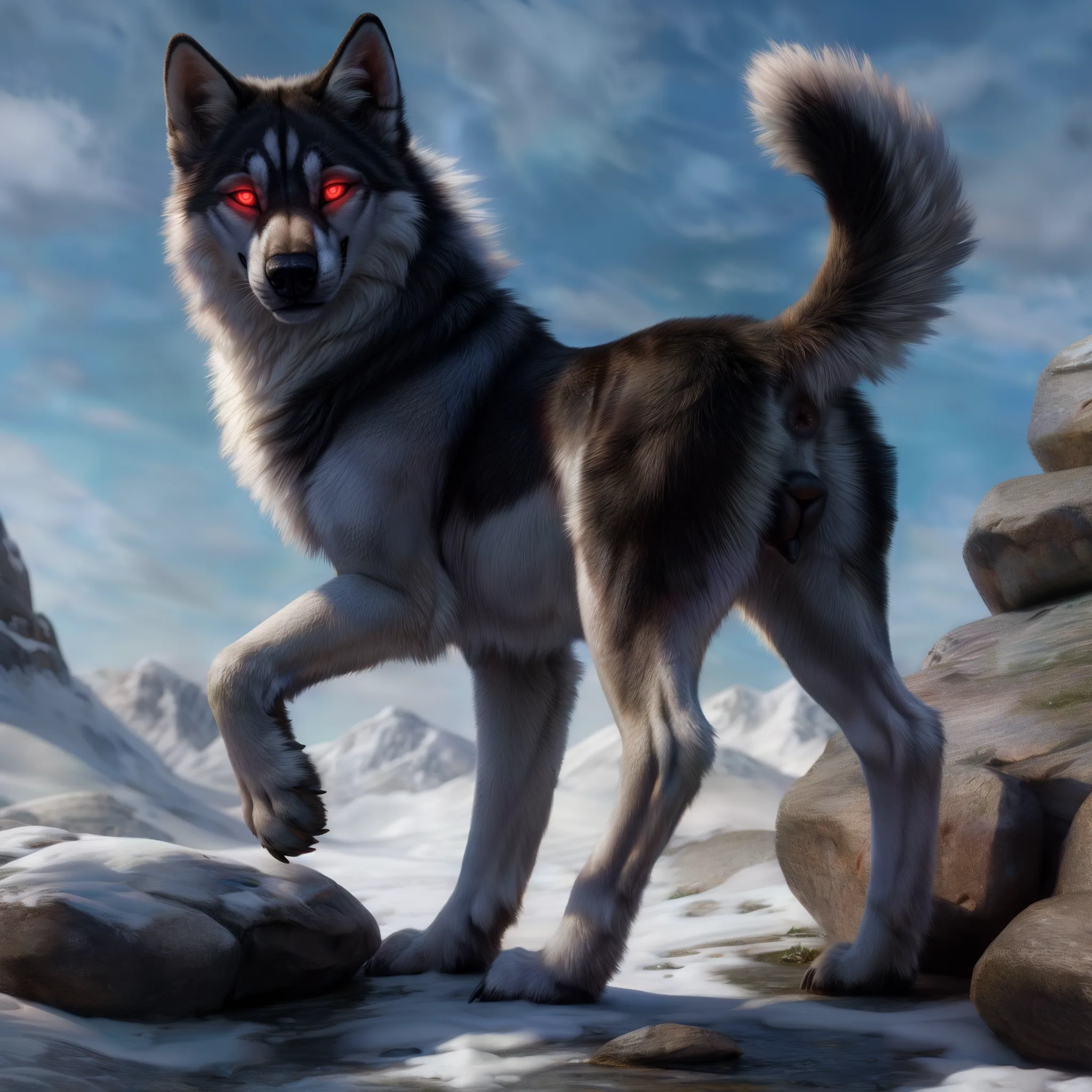 Dire Wolf Babe Exposed In Snowy Mountains | Yiff Party