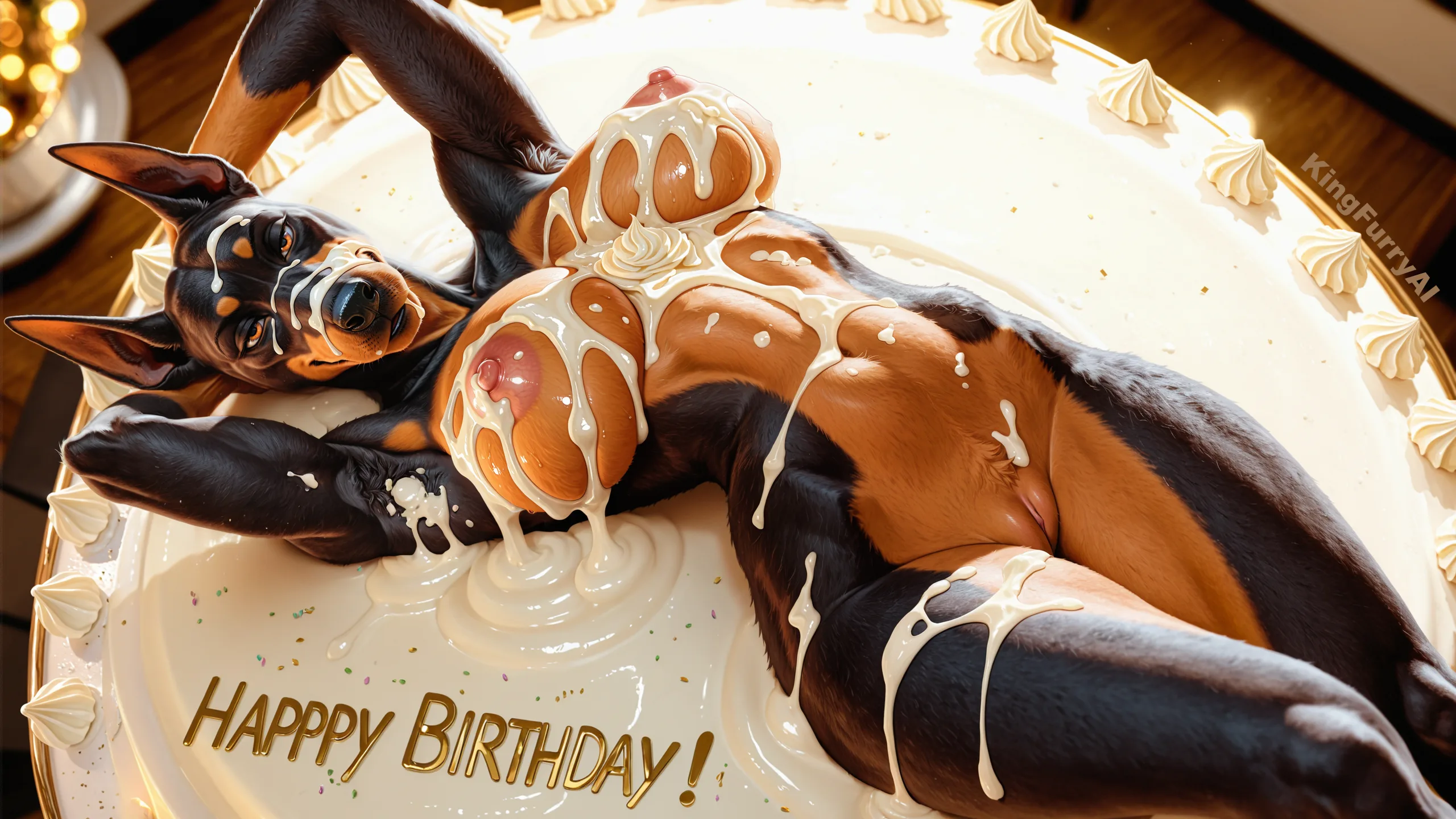 Doberman Furry Birthday Babe Nude With Cake | Yiff Party