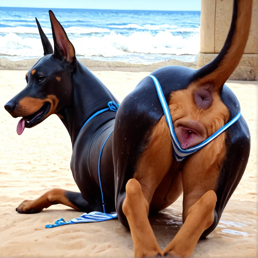 Doberman Pincher Presenting Wet Pussy And Anus On Beach | Yiff Party