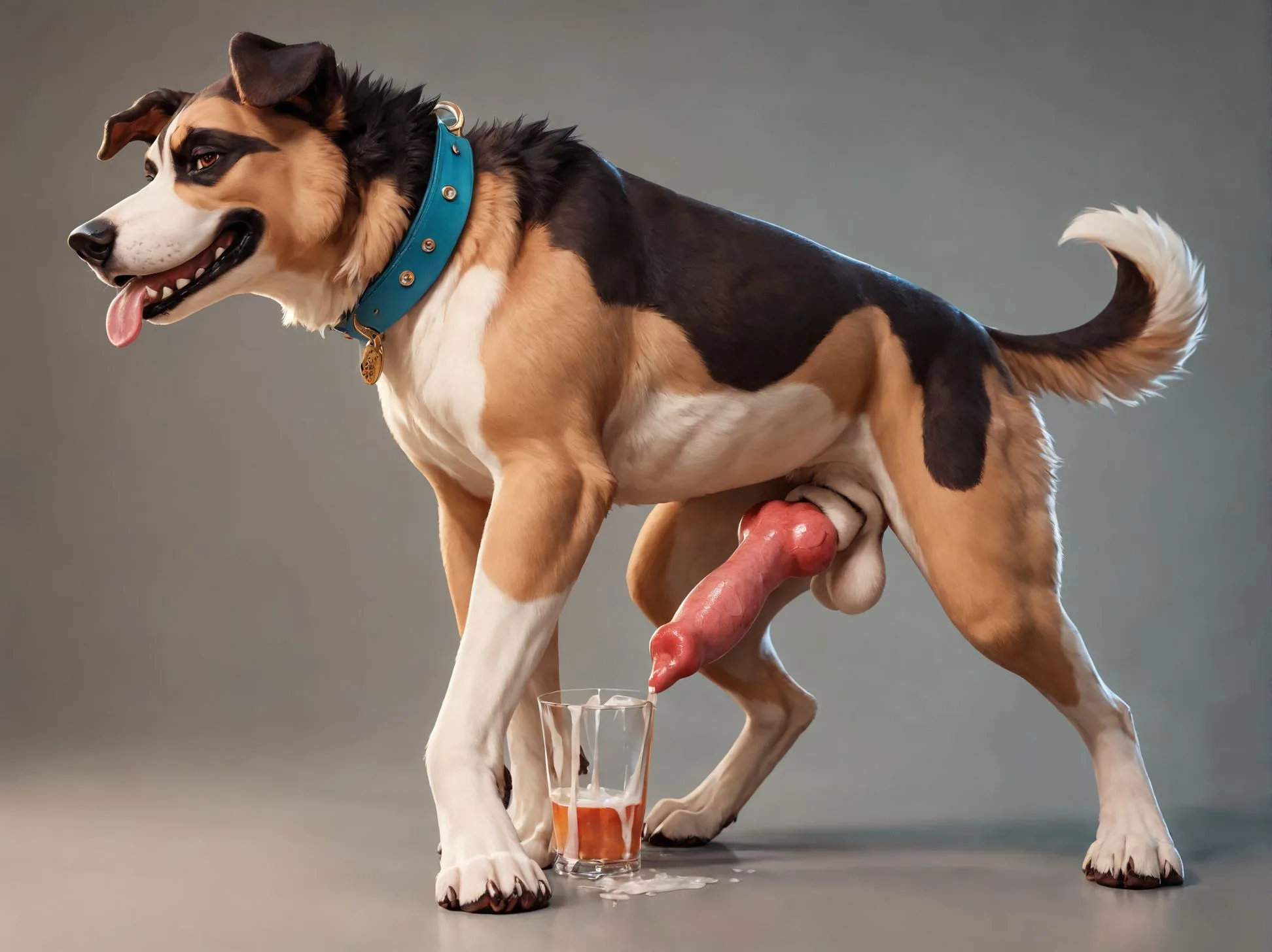 Dog With Large Penis And Balls, Collar, Tongue Out, Solo Cum In Cup | Yiff Party