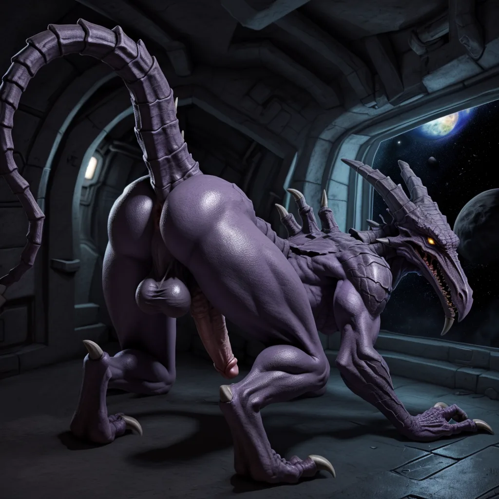 Dragon Alone In Spaceship Shows Off Erect Purple Dick | Yiff Party
