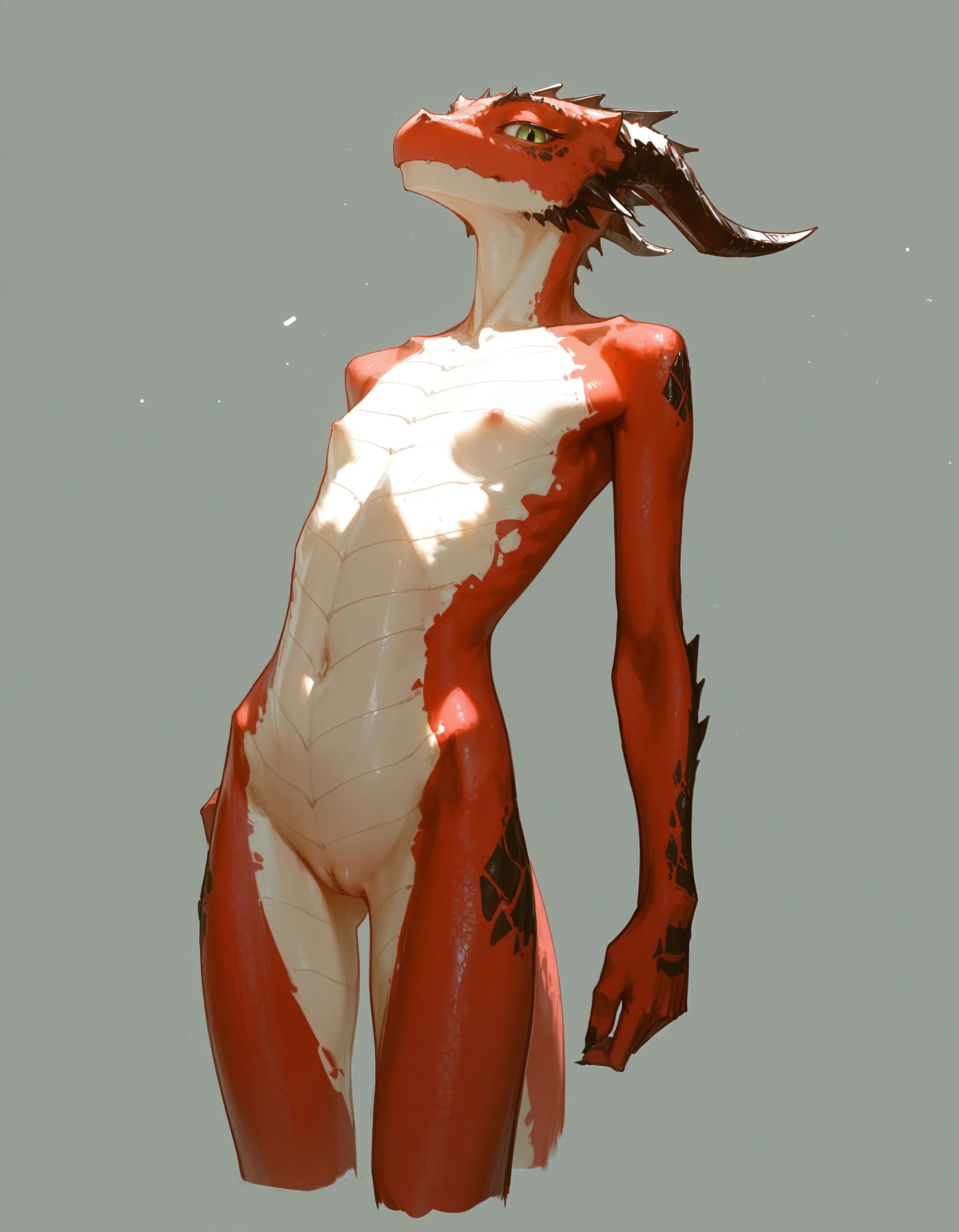 Dragon Scalie Nude With Small Breasts And Innie Pussy On Grey Backgrou | Yiff Party