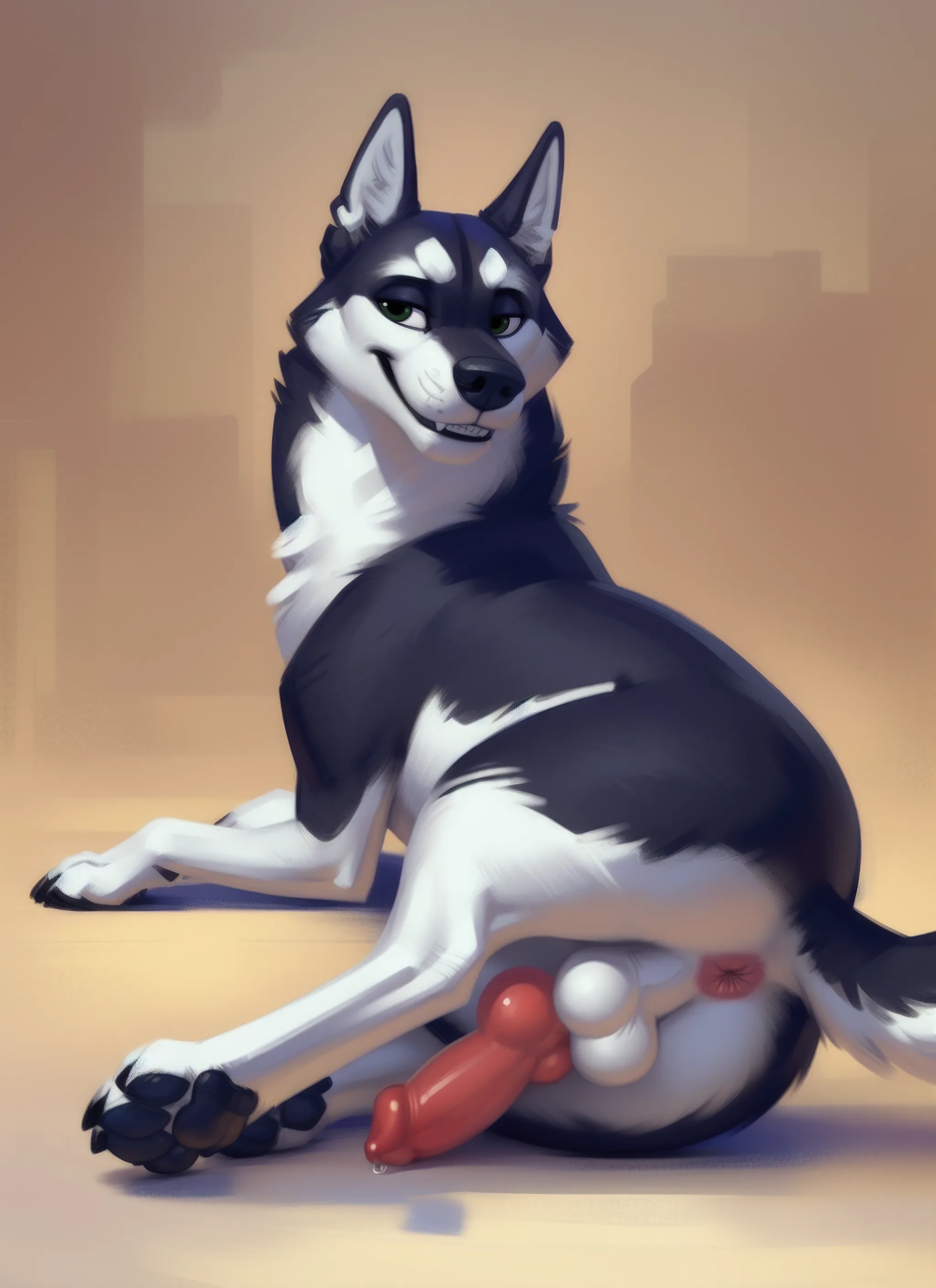Dripping Red Erection Exposing Husky'S Pink Anus And Knot | Yiff Party