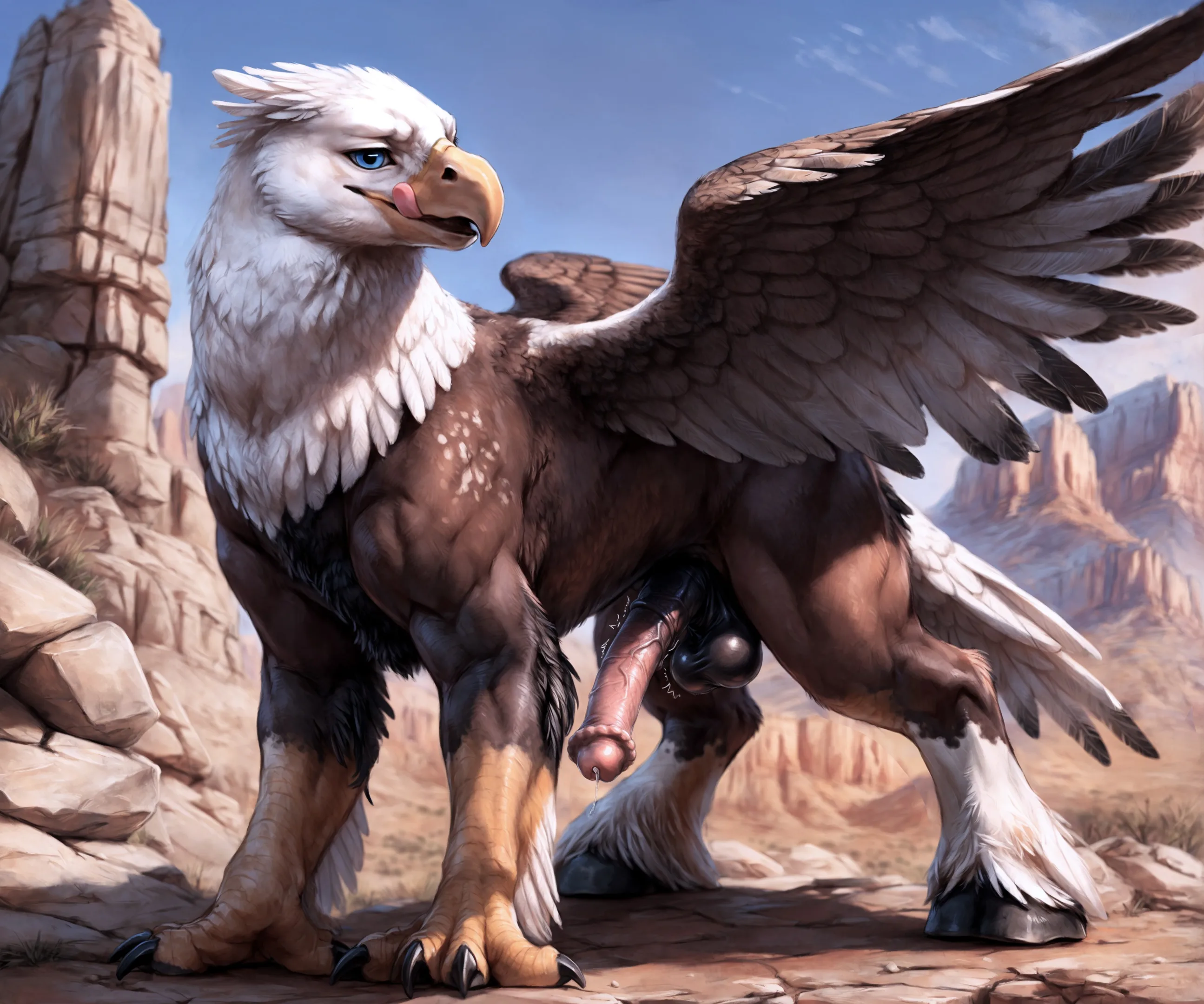 Eagle-Hippogriff Hybrid Shows Off Glistening Veiny Cock And Balls | Yiff Party