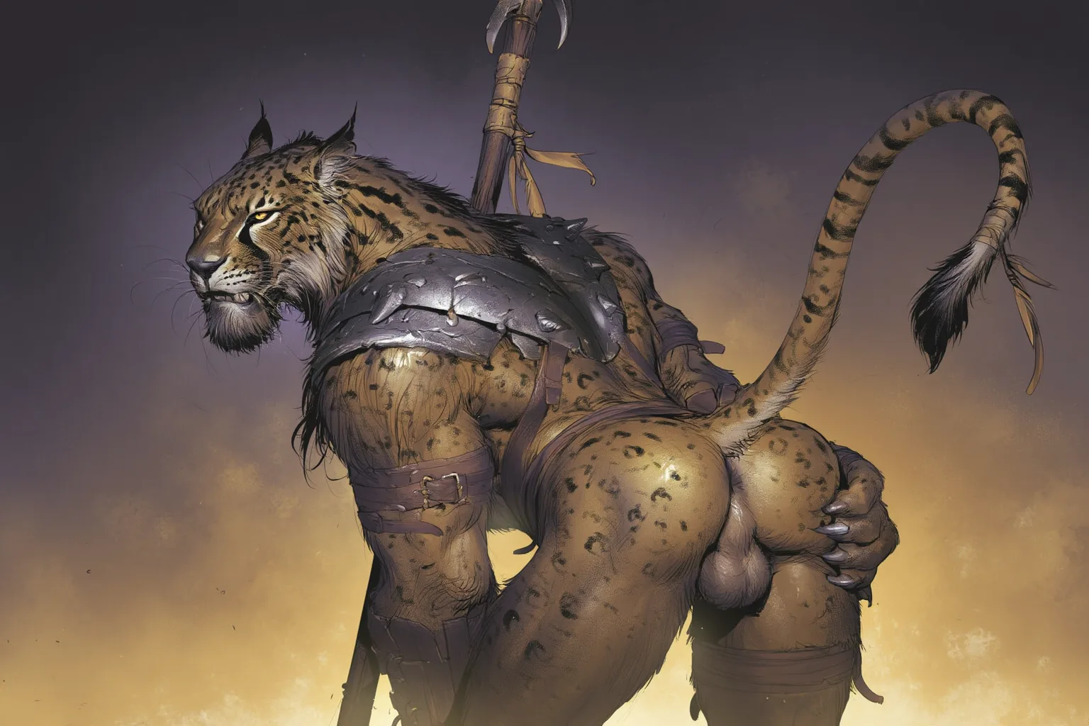 Feline Hybrid Anthro Warrior Presenting Spread Butt And Balls With Spe | Yiff Party