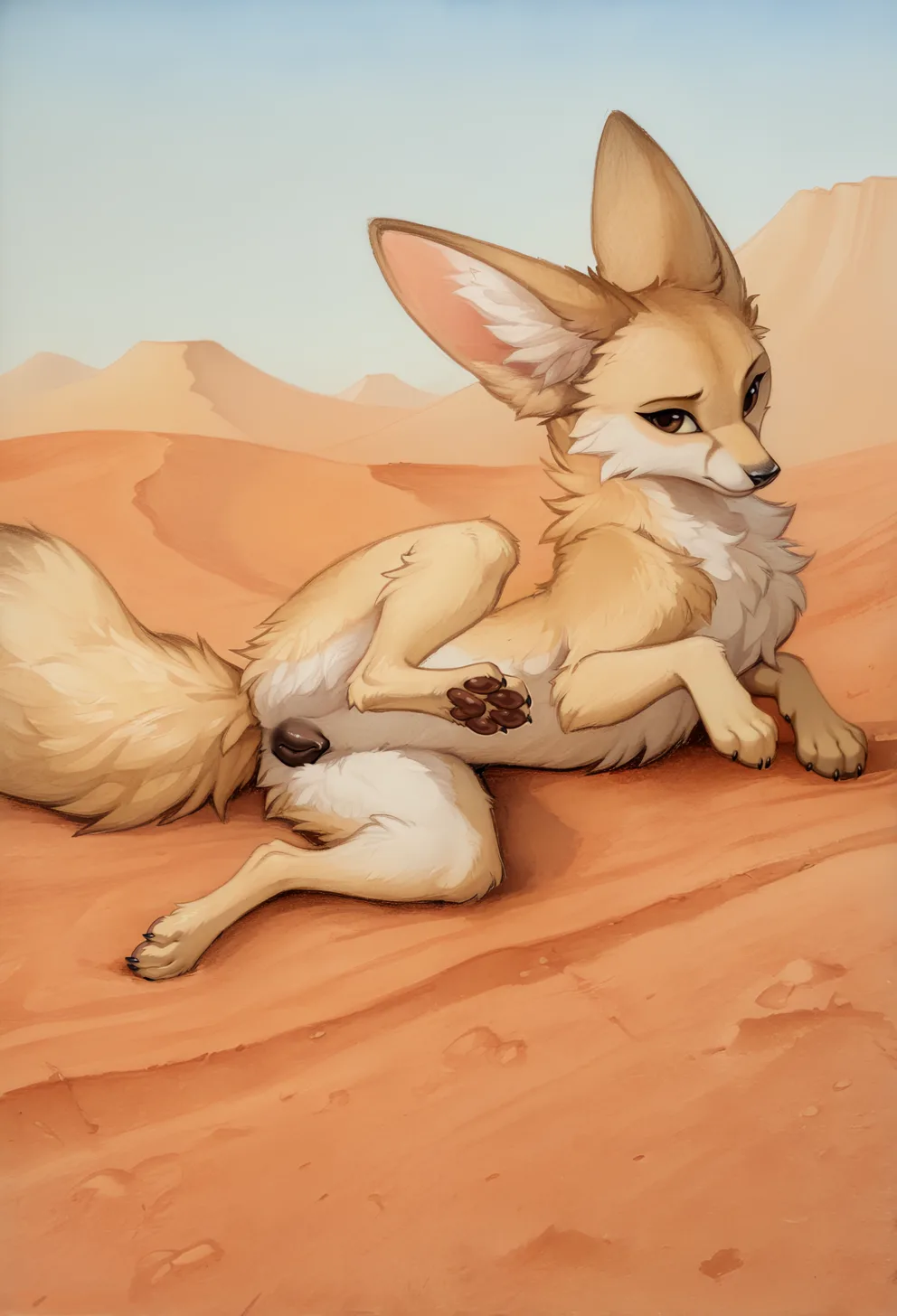 FennecFoxTanBodyBrownEyesLyingOnSideRaisedLegSoloPussyExposure | Yiff Party