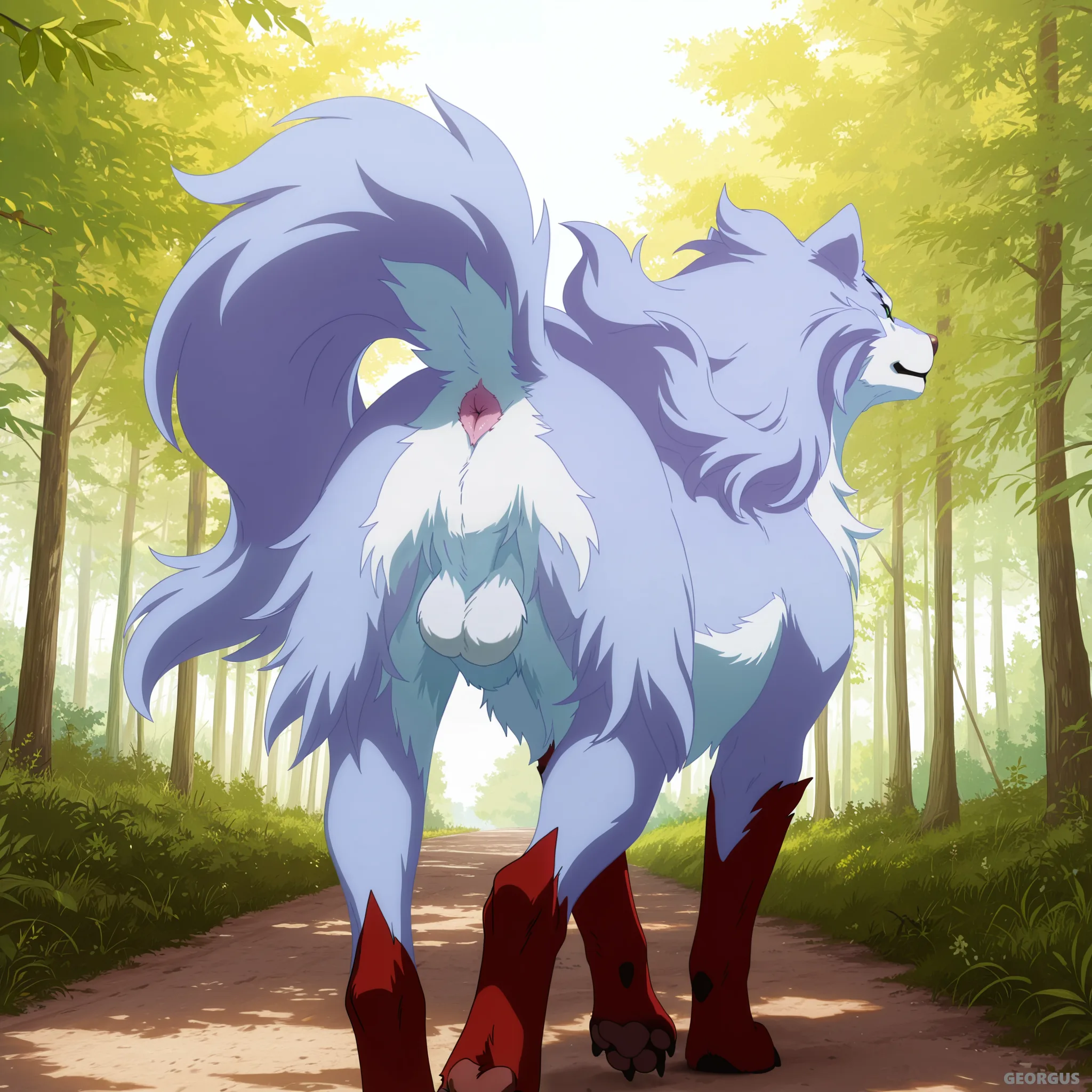 Fenrir Wolf Presenting Fluffy Balls And Pink Anus In Forest | Yiff Party