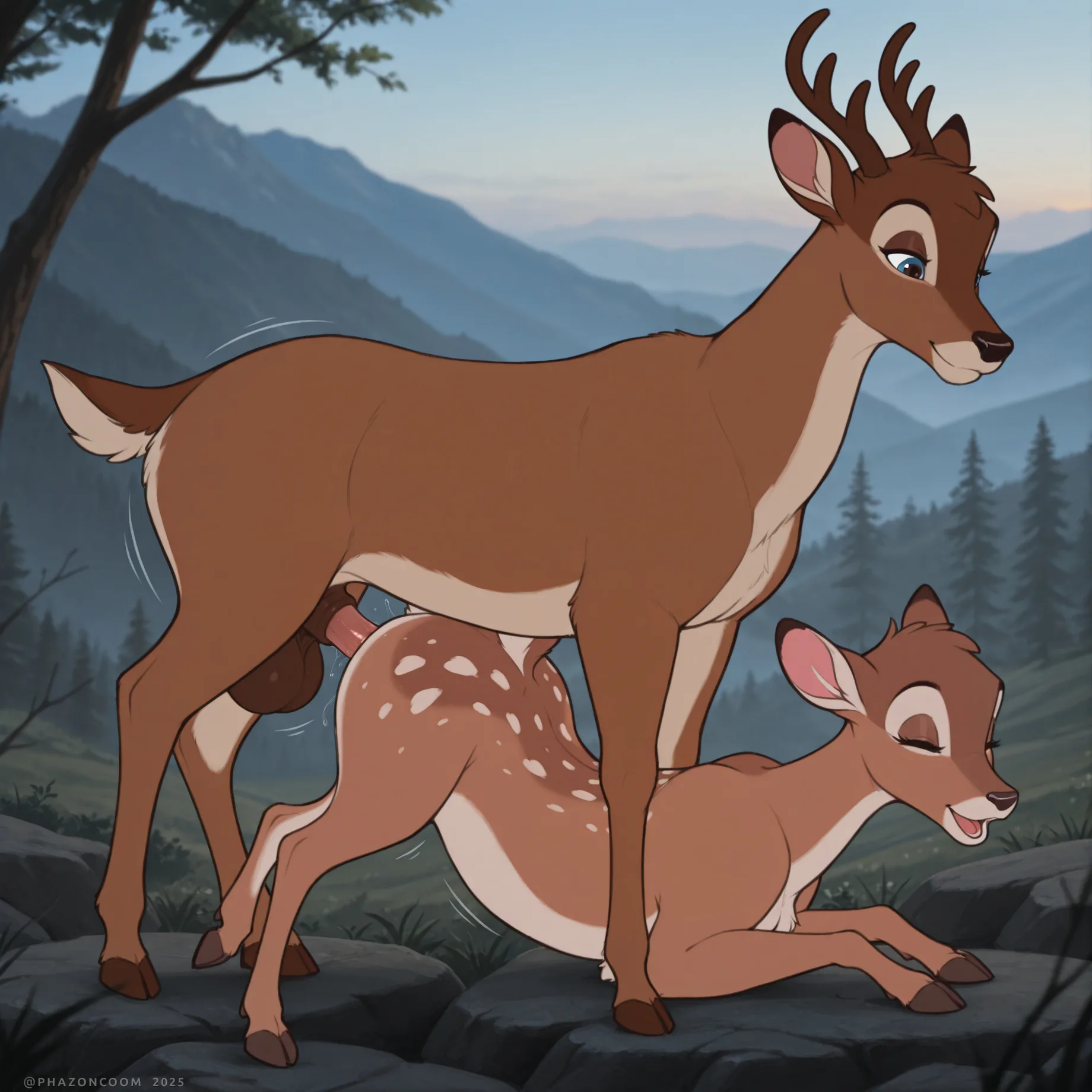 Feral Bambi And Faline Cervine Duo Outdoor Sex | Yiff Party