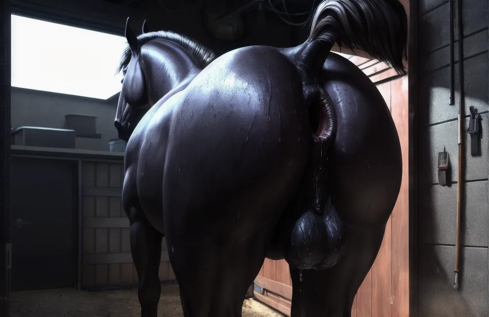 Feral Black Horse Exposing Gaping Anus And Balls | Yiff Party