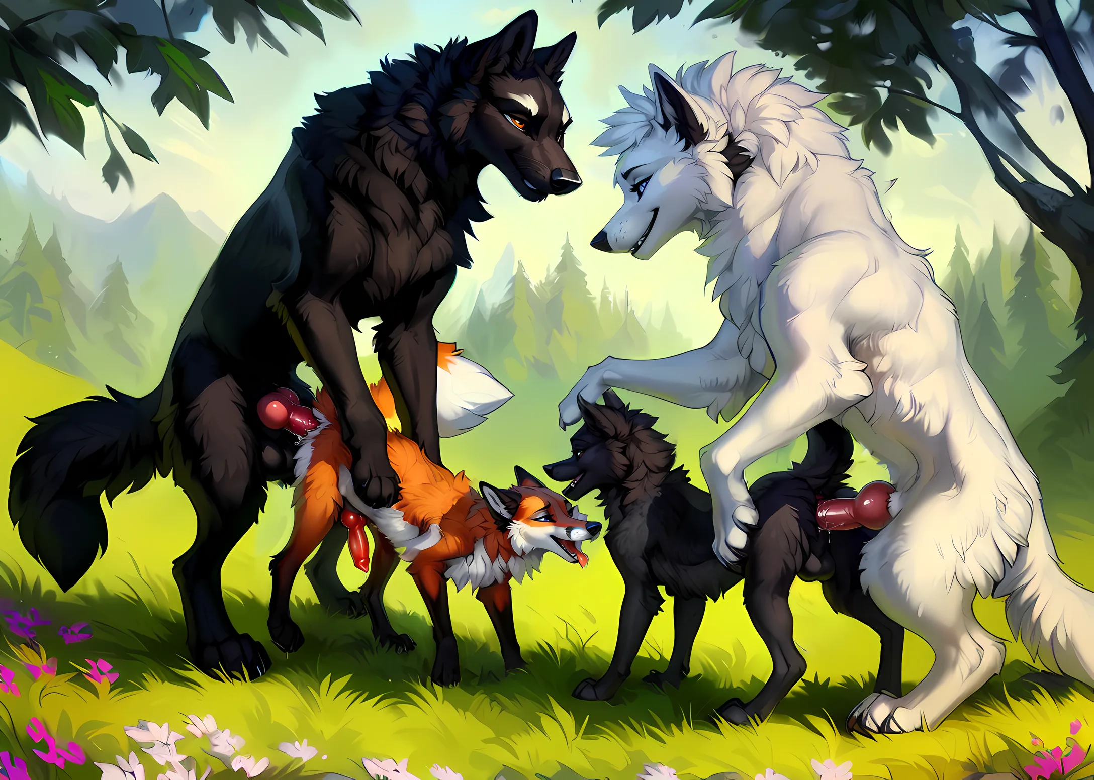 Feral Canid Group Anal Penetration In Grass | Yiff Party