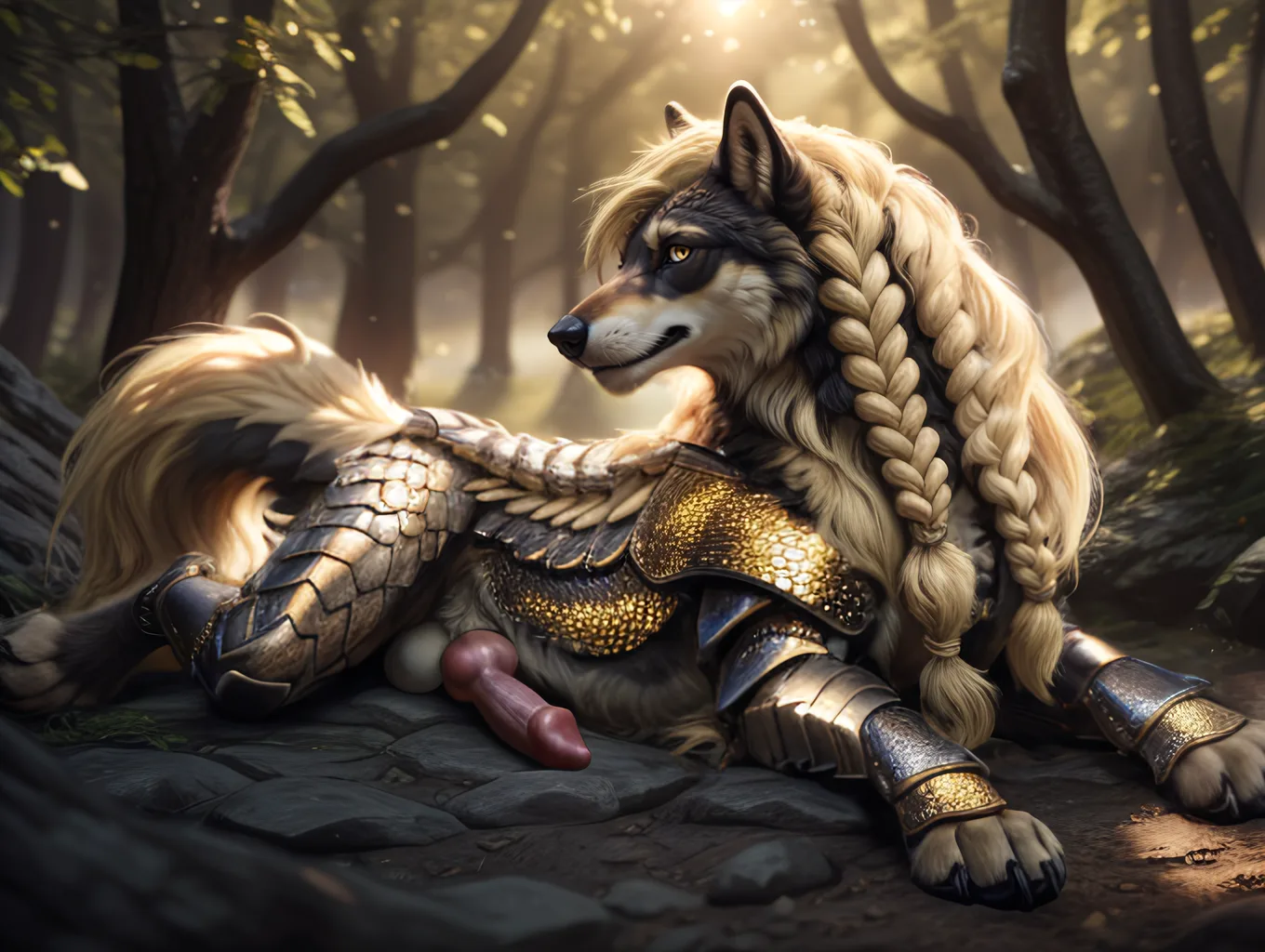 Feral Canid Warrior Exposes Fluffy Armor Clad Wolf Cock | Yiff Party