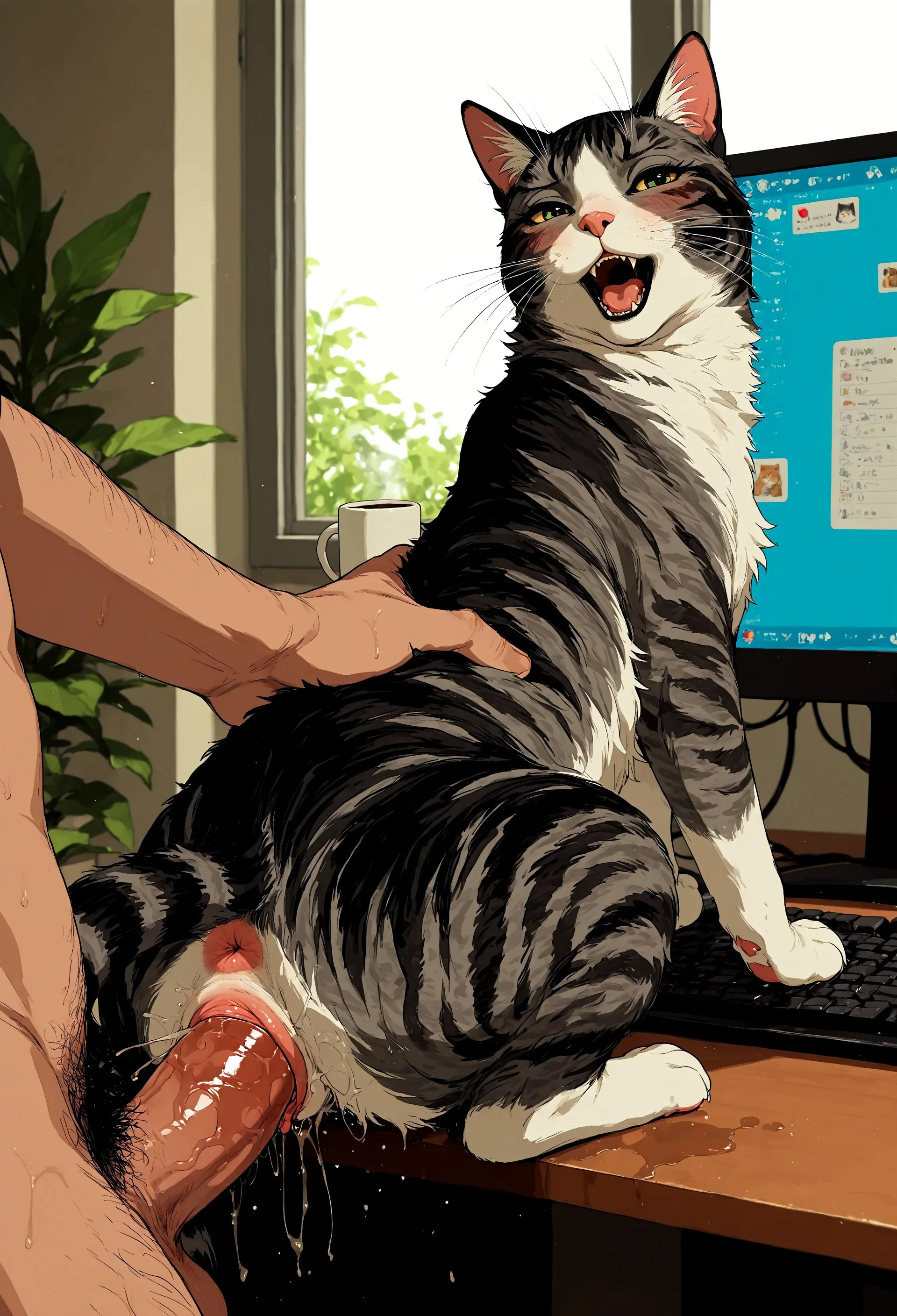Feral Cat Pussy Penetrated By Human Penis, Dripping Fluids | Yiff Party