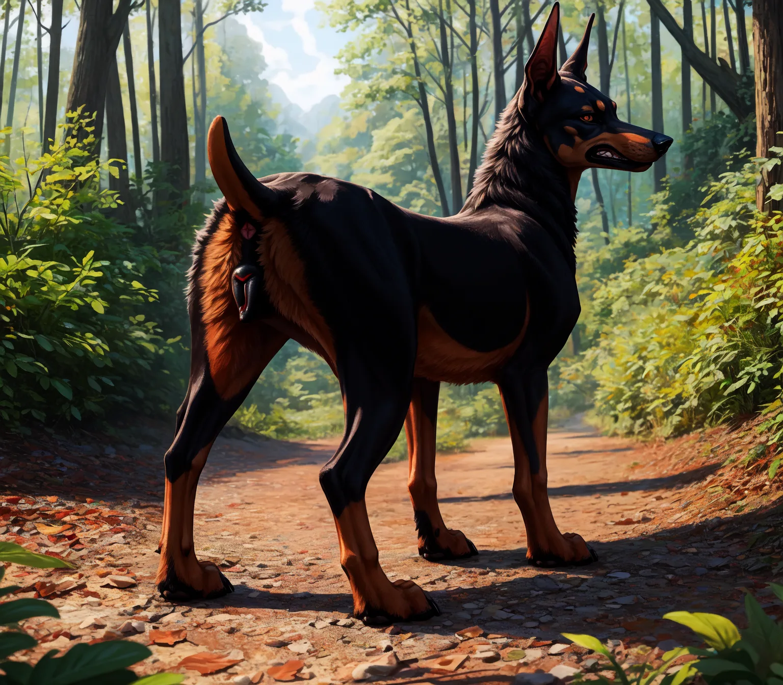 Feral Dobermann Bitch Presents Pink Anus In Sunlit Forest | Yiff Party