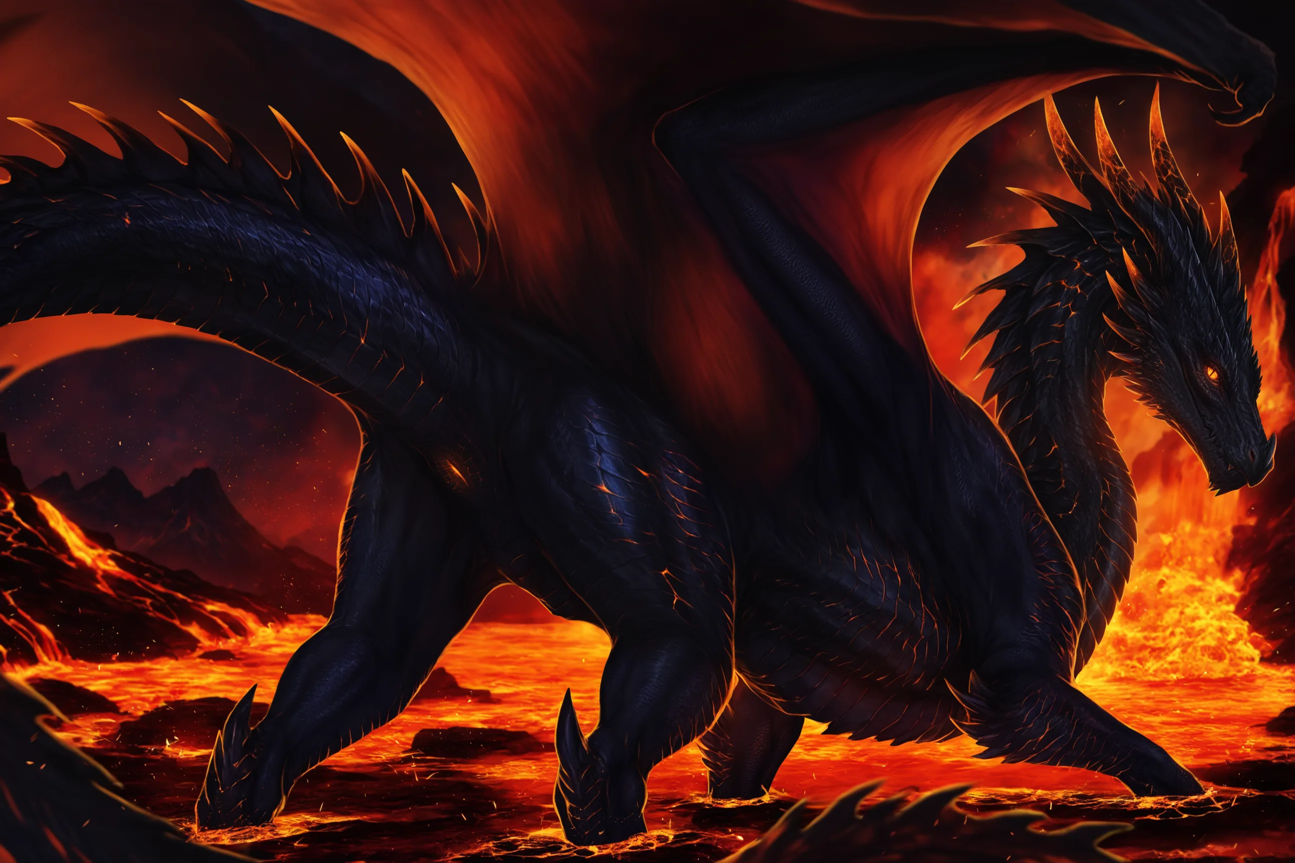 Feral Dragoness Presenting Cloaca And Glowing Genitalia In Lava Bath | Yiff Party