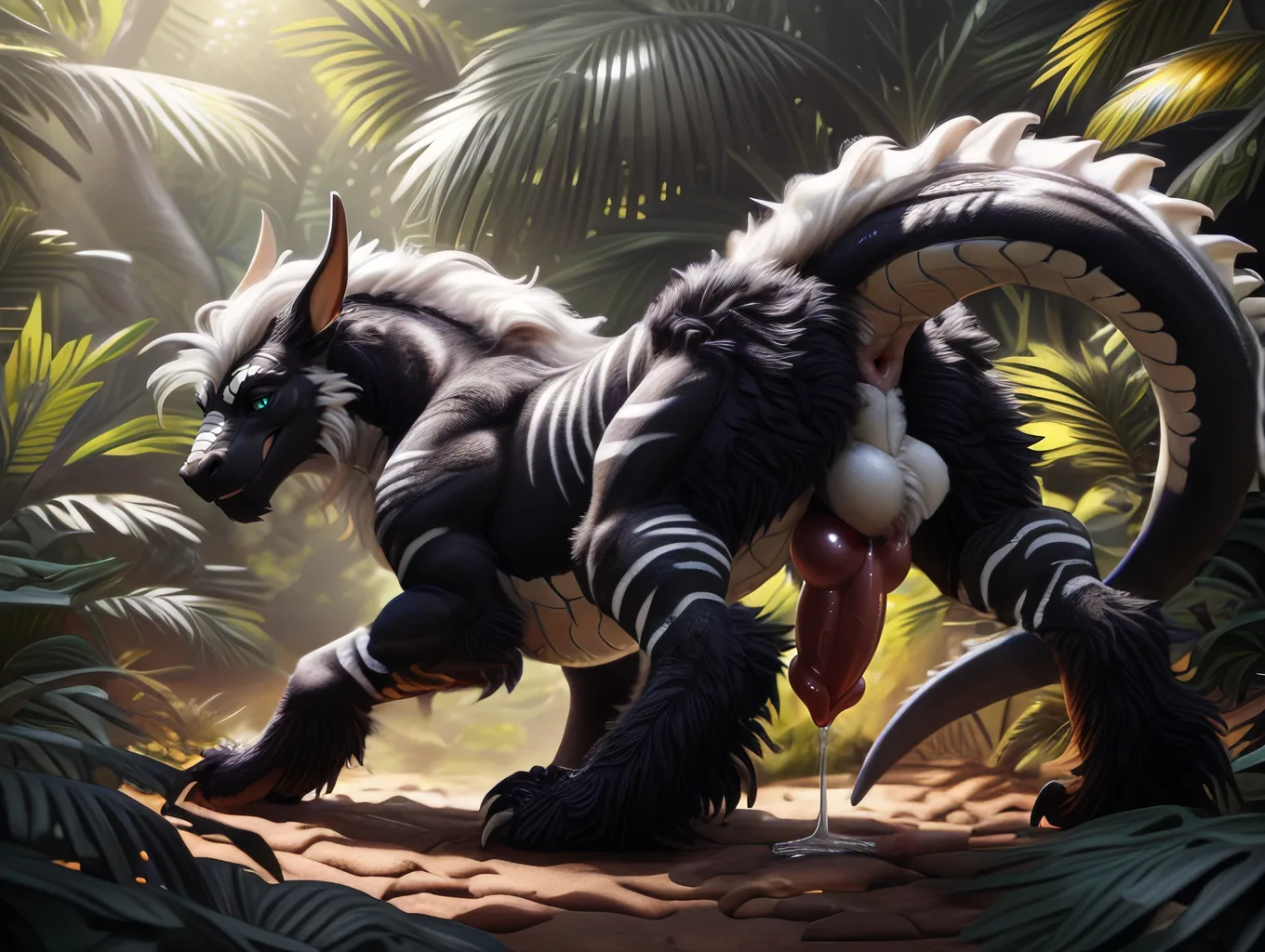 Feral Felkin Shows Off Striped Canine Genitals In Jungle | Yiff Party