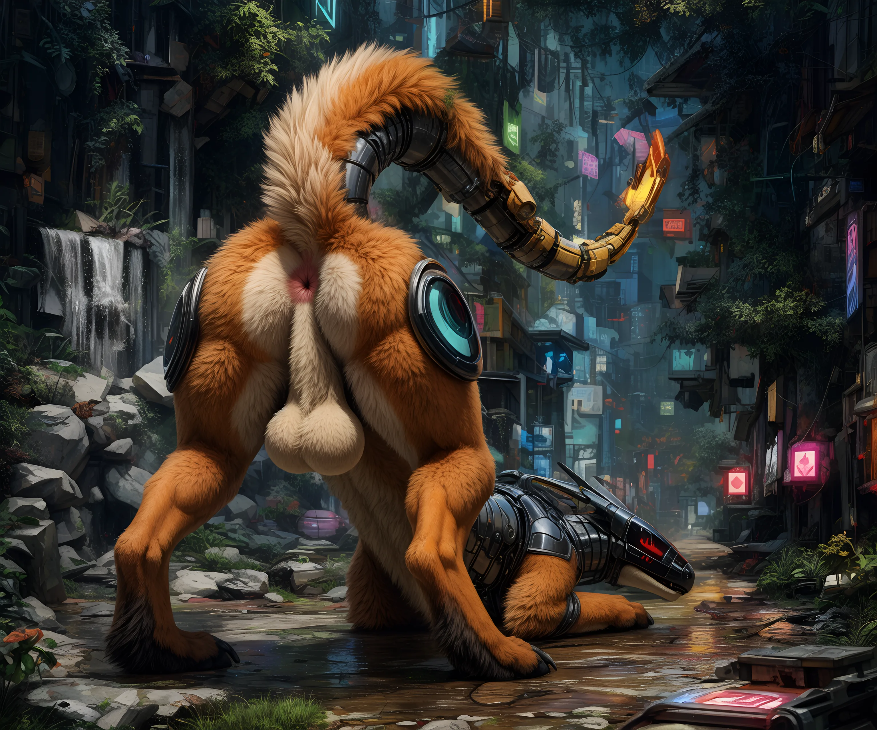 Feral Hybrid Fucks Own Glowing Pink Ass On City Ground | Yiff Party