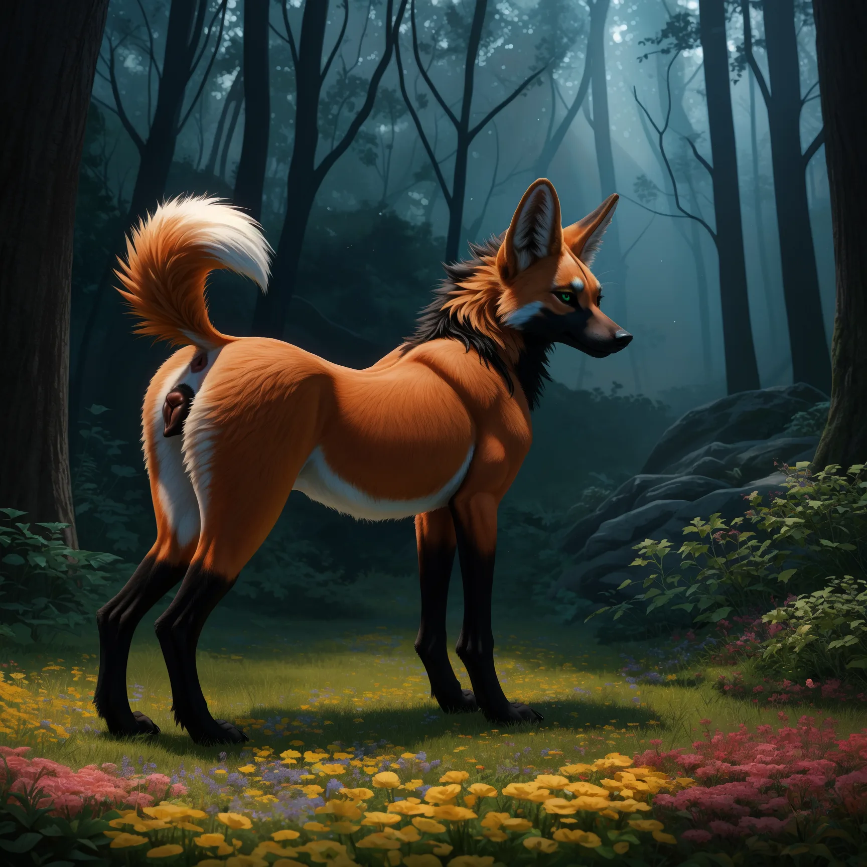 Feral Maned Wolf Babe Shows Pink Pussy And Anus In Forest | Yiff Party