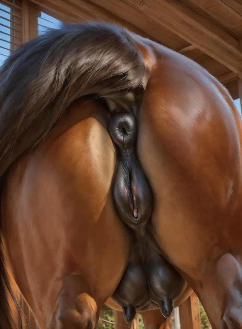 Feral Mare Presents Glistening Black Pussy And Puffy Anus In Stable | Yiff Party