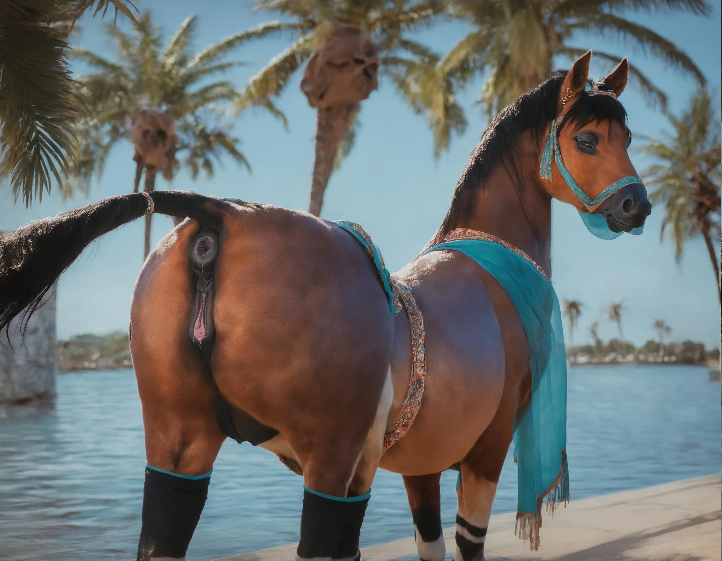 Feral Mare Presents Hindquarters In Sheer Harem Outfit | Yiff Party