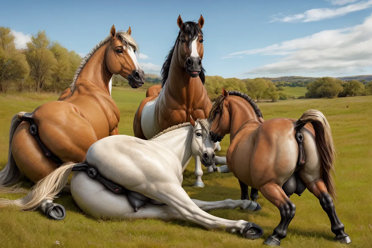 Feral Mares Trio Presenting Anuses And Teats | Yiff Party