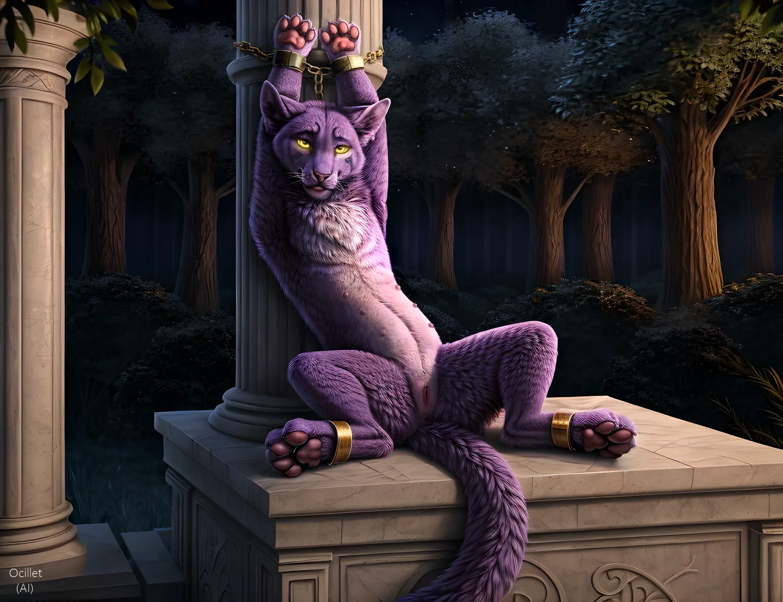 Feral Night Elf Pantherine Bound In Forest Ruins | Yiff Party