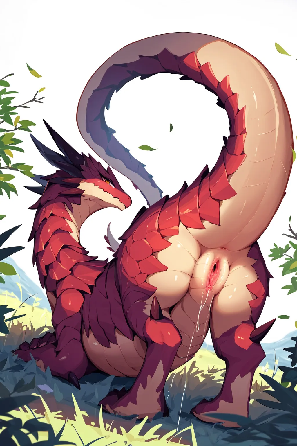 Feral Red Dragoness Presenting Wet Scaled Pussy On All Fours | Yiff Party