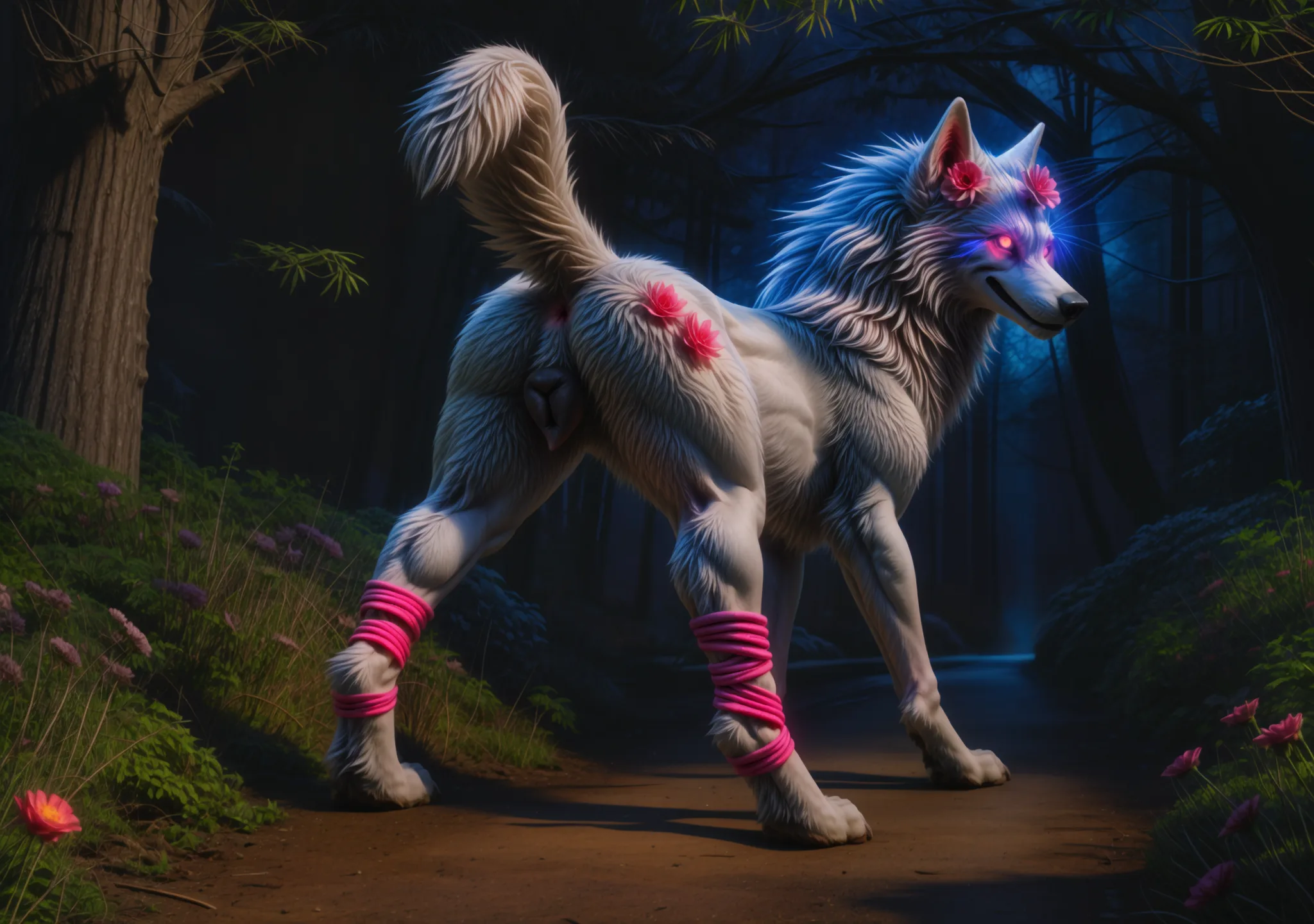 Feral White Wolf Beauty Presents Plump Pink Pussy On Moonlit Path | Yiff Party