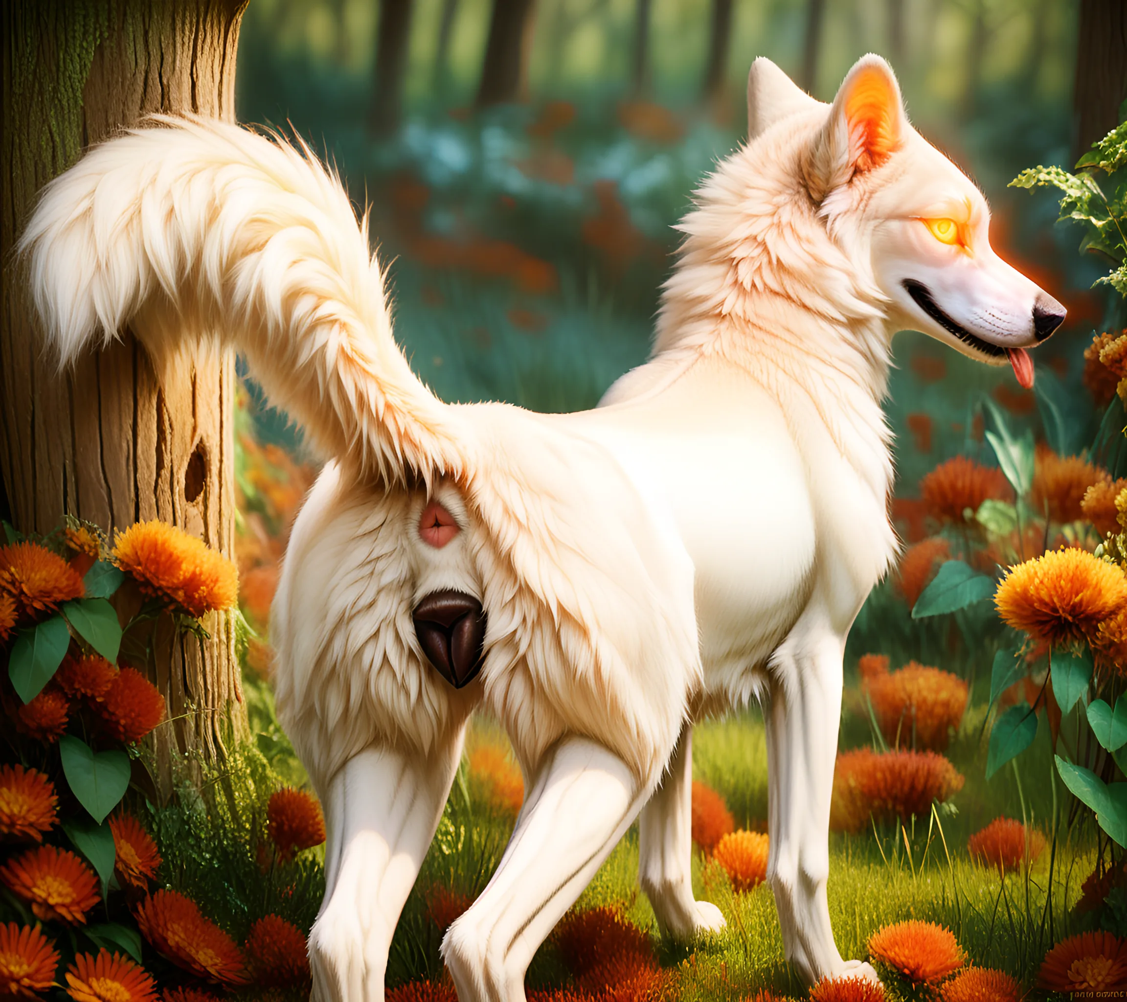 Feral White Wolf Bitch Presents Pink Pussy And Anus To Viewer In Fores | Yiff Party