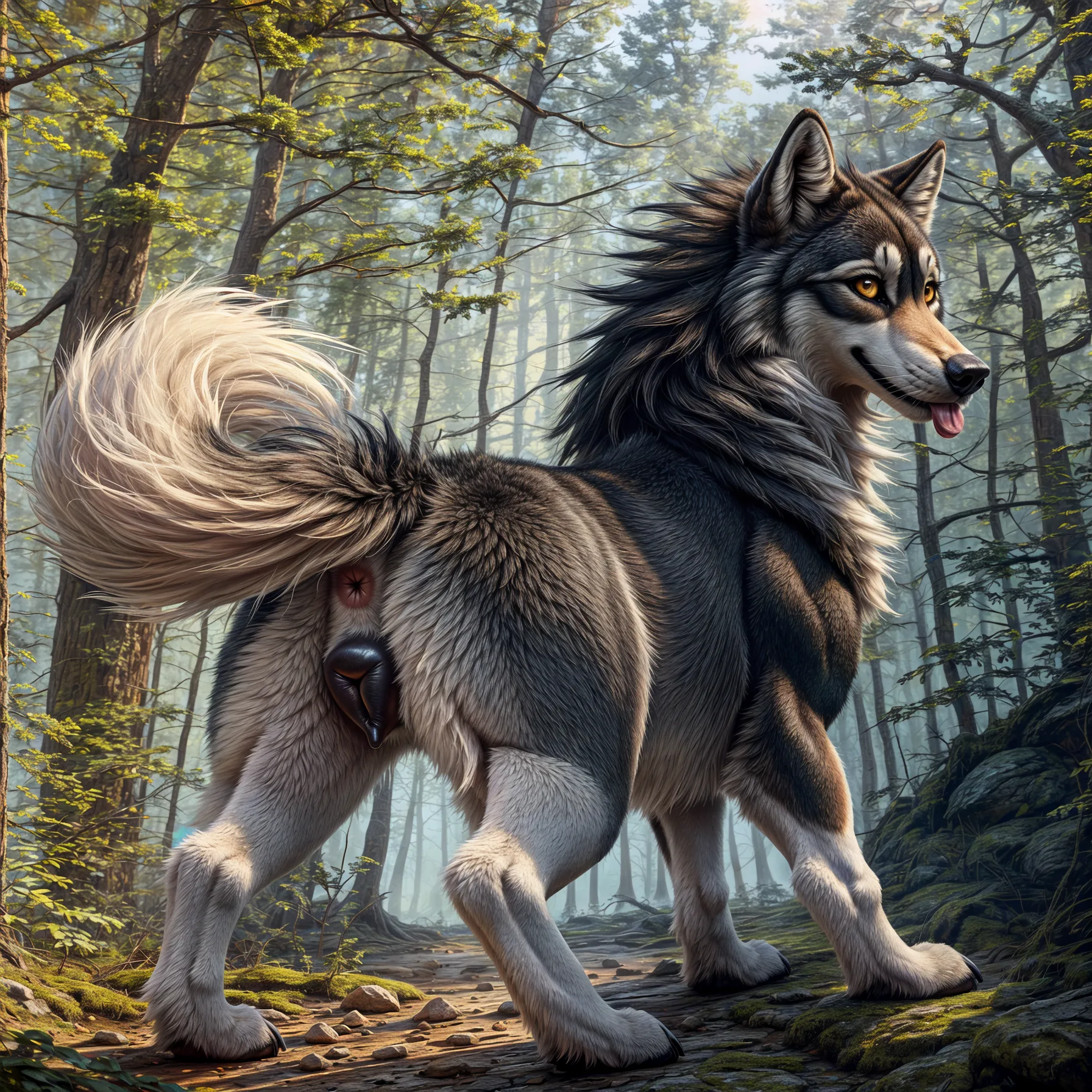 Feral Wolf Bitch Flaunting Glistening Pink Pussy In Sunlit Forest | Yiff Party