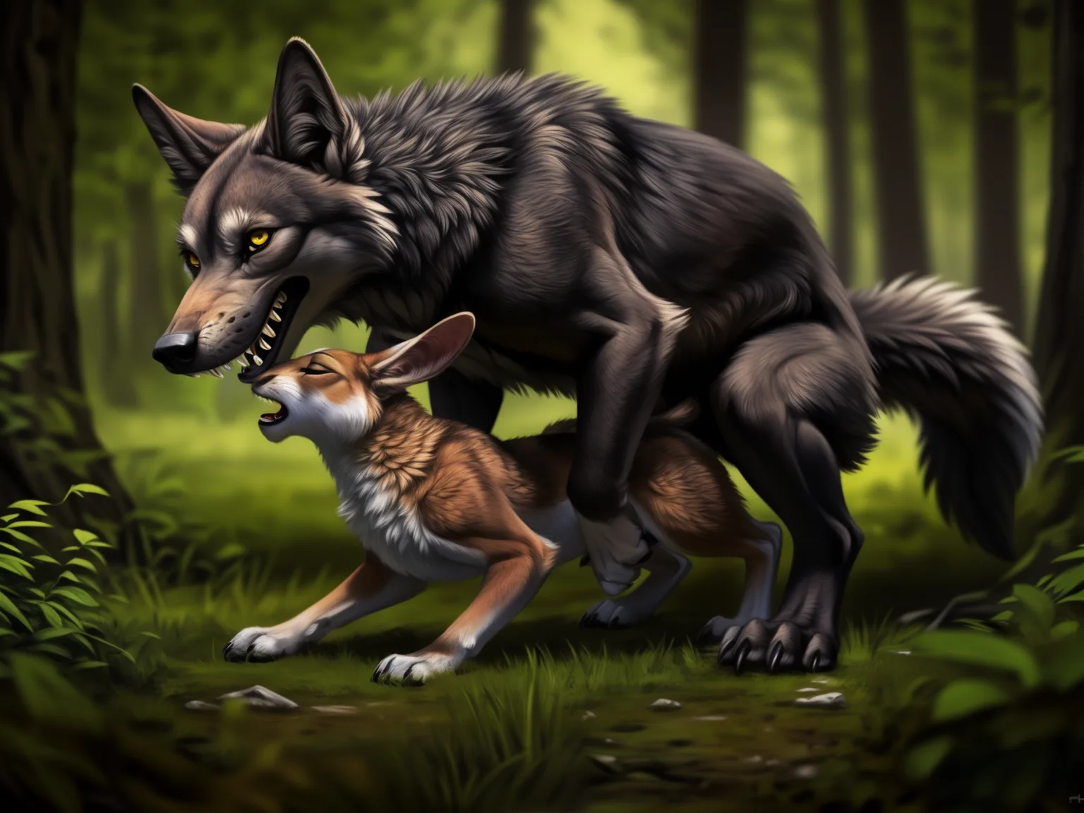 Feral Wolf Mounts Ambiguous Rabbit In Forest | Yiff Party