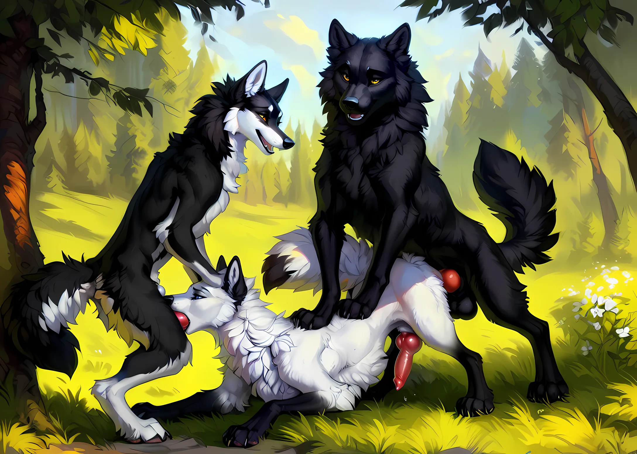 Feral Wolves In Grassy Forest Threesome Ass Up Balls Deep Knotting Ana | Yiff Party