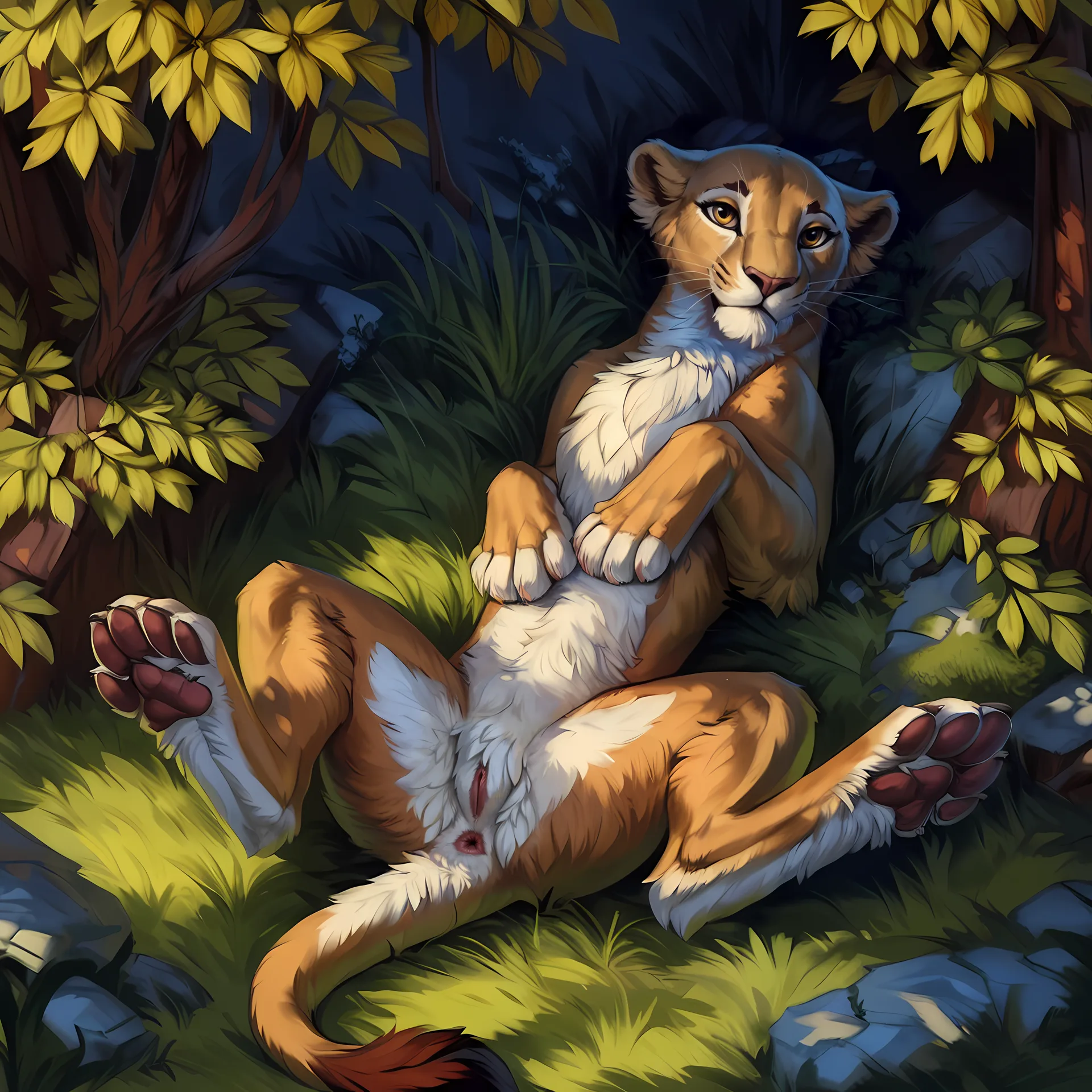 Fierce Pantherine Beauty Lying Back Spreading Tan Pussy On Grass | Yiff Party