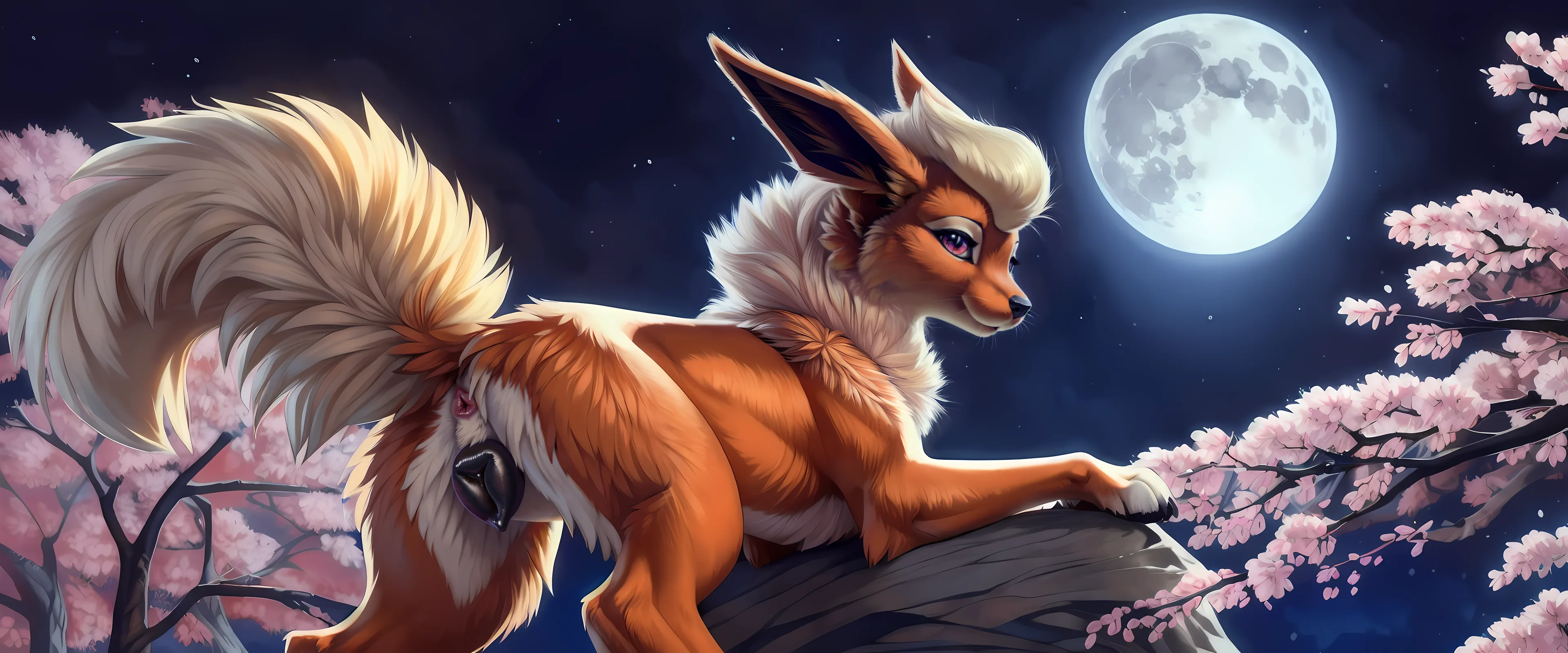 Flareon Under Full Moon Spreading Vulva Wide | Yiff Party