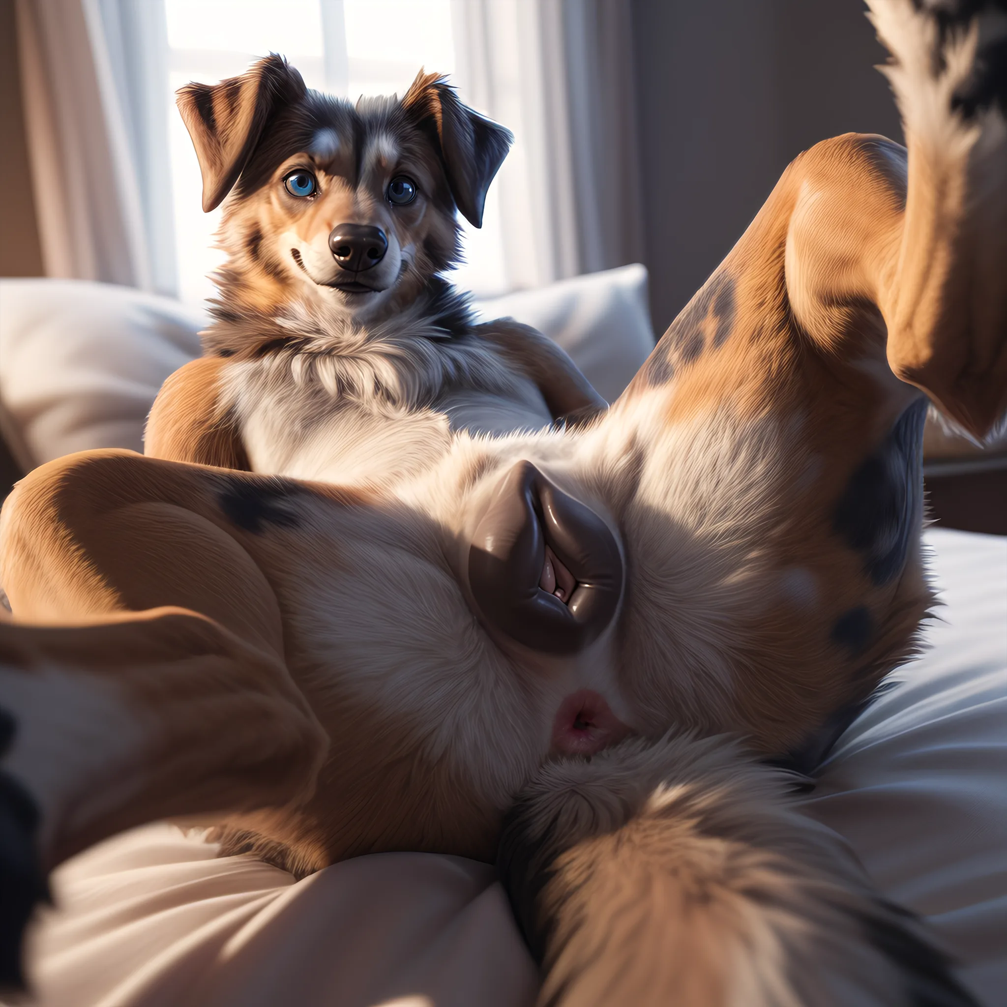Fluffy Aussie Shepherd Bitch Spreads Pussy On Bed | Yiff Party