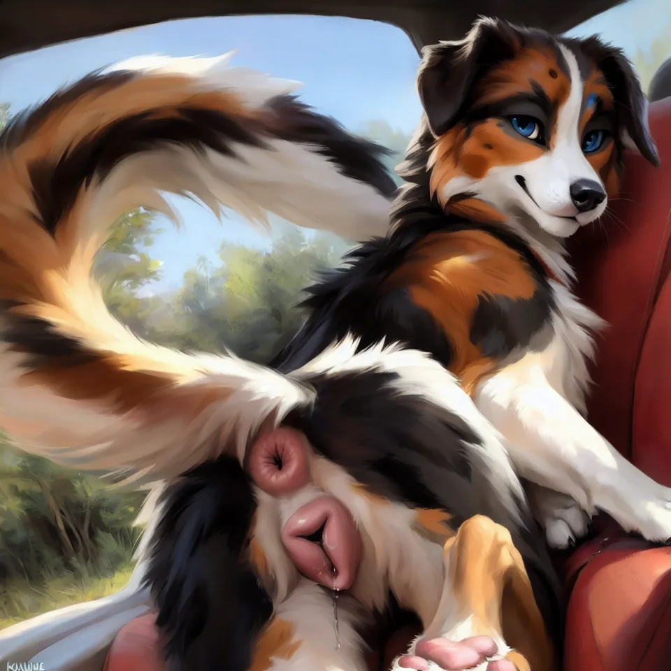 Fluffy Australian Shepherd In Heat Presents Glistening Pussy And Ass I | Yiff Party