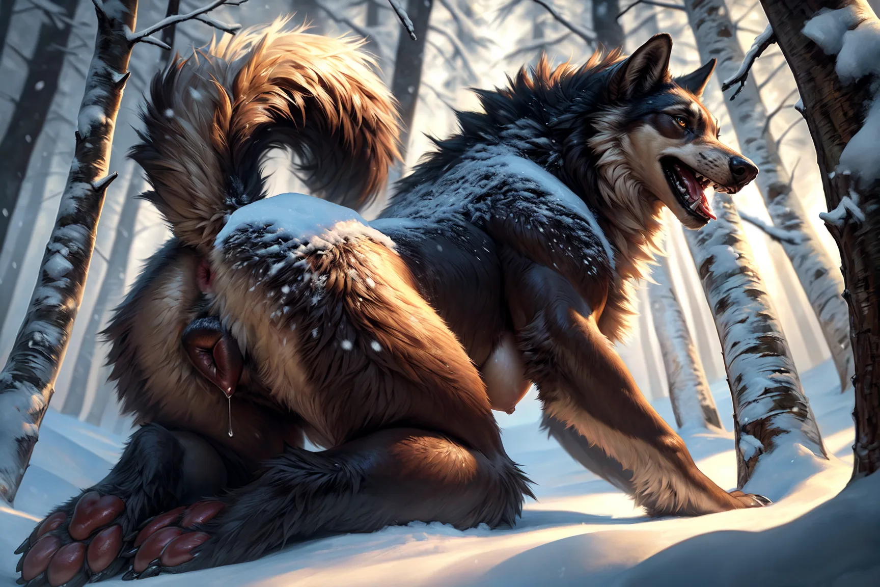 Fluffy Brown Wolf Babe Kneeling Seductively In Snow Exposing Her Dripp | Yiff Party
