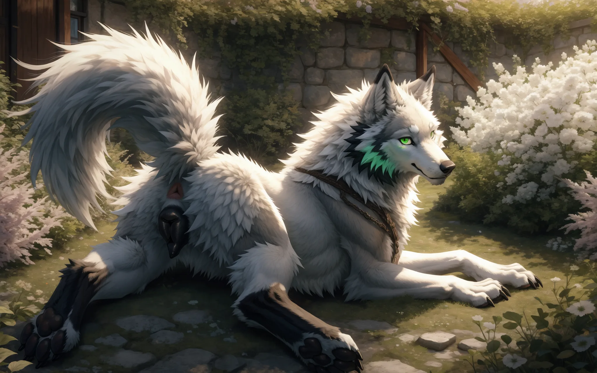 Fluffy Grey Wolf Beauty Presents Pink Pussy And Glistening Anus Outdoo | Yiff Party