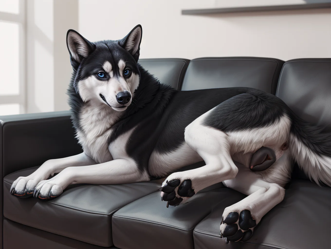 Fluffy Husky Babe Presents Her Sweet Pink Pussy On The Sofa | Yiff Party