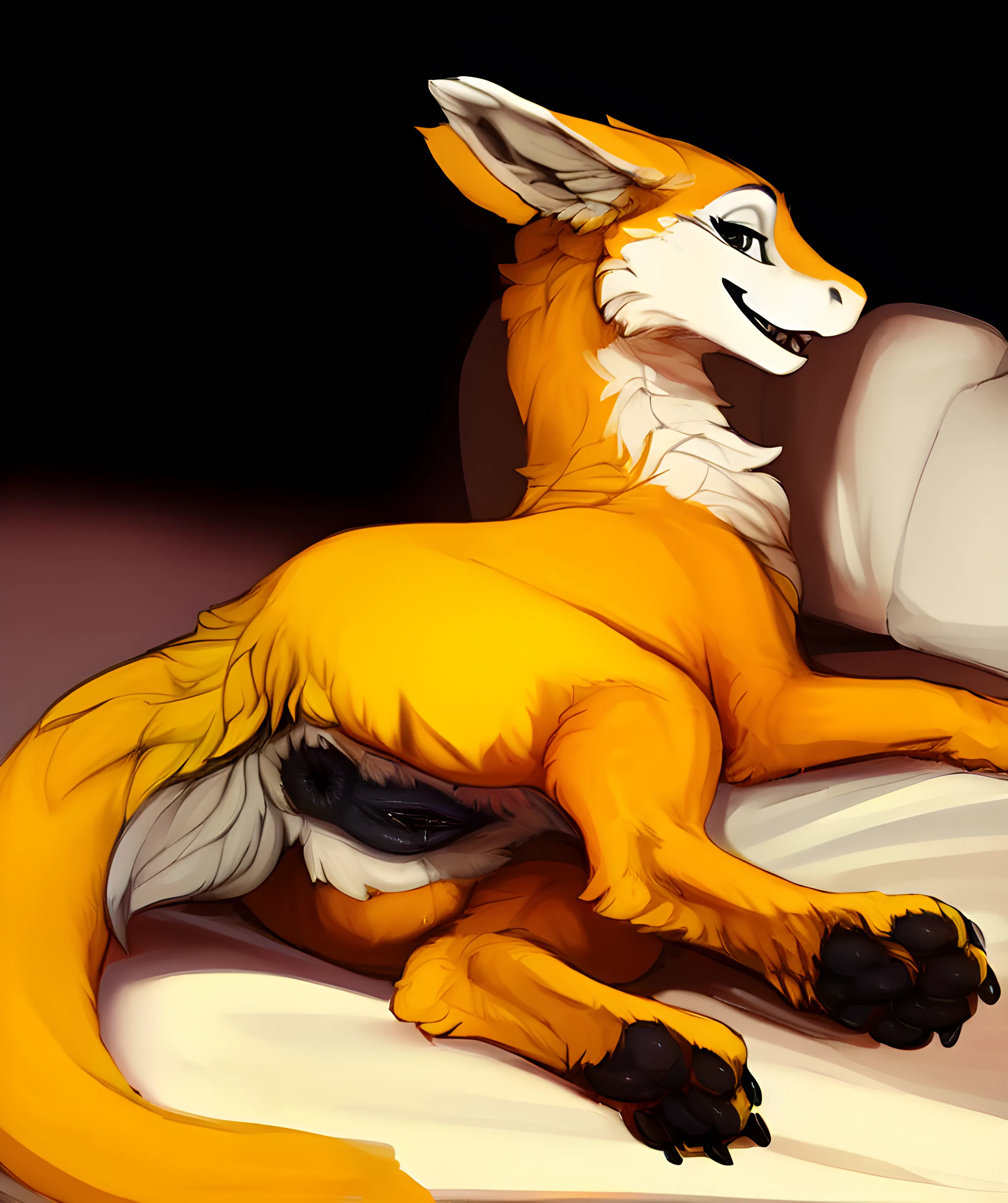 Fluffy Orange And White Dragoness Presenting On Bed With Seductive Smi | Yiff Party