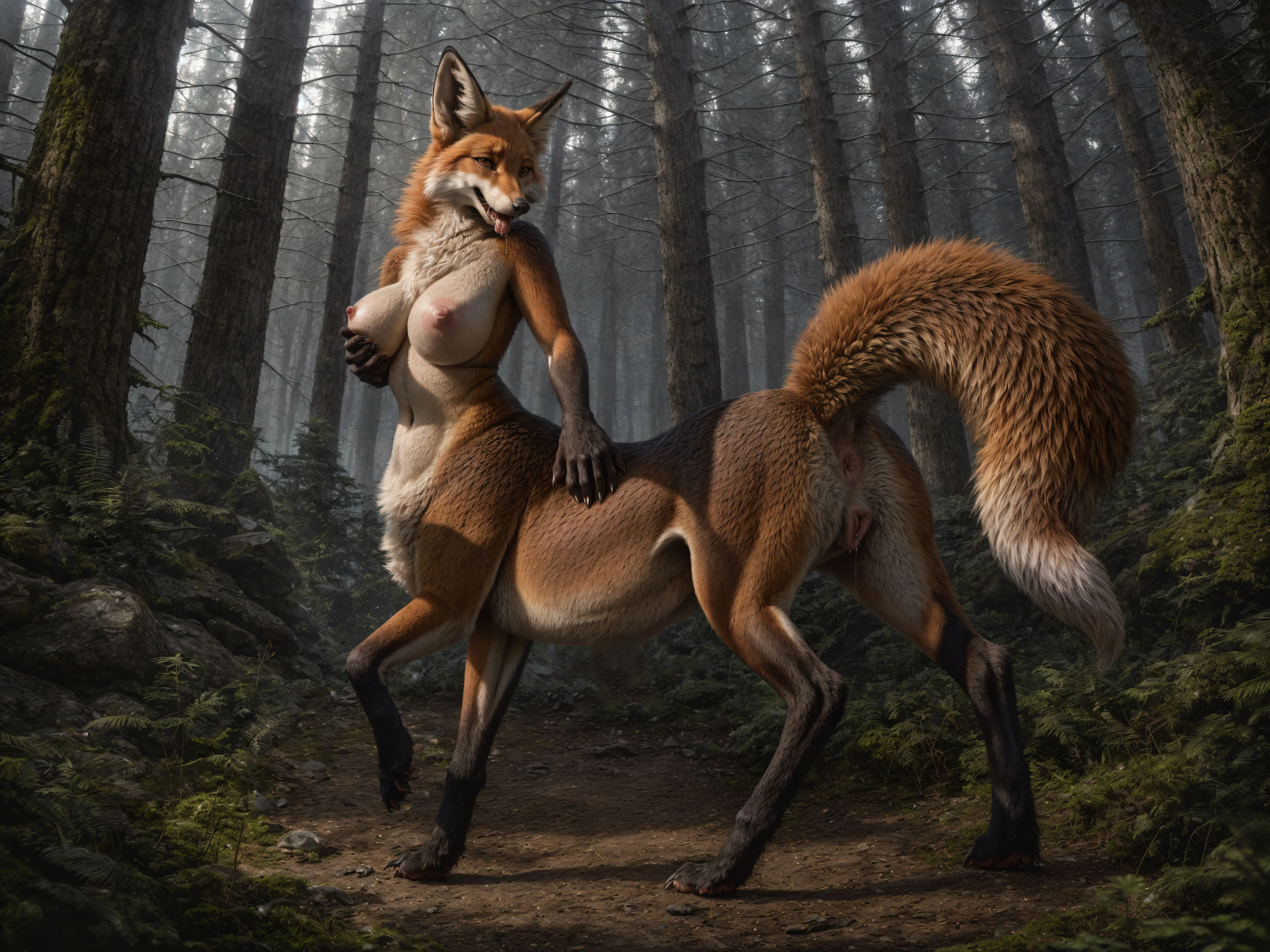 Fluffy Orange Fox Taur Steps Outside For A Solo Show | Yiff Party