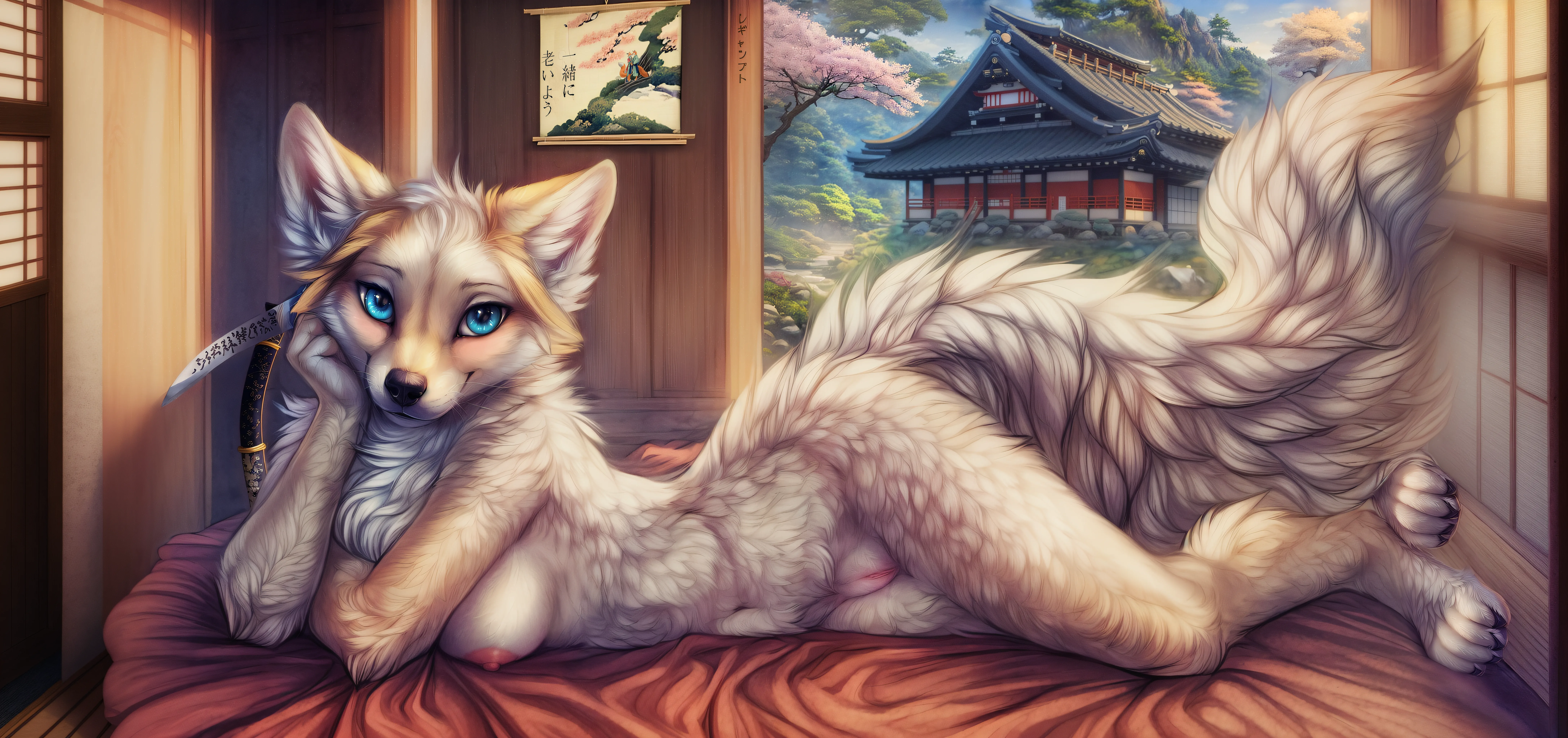 Fluffy Orange Vixen Seductively Presents Her Nude Body On A Bed In A J | Yiff Party