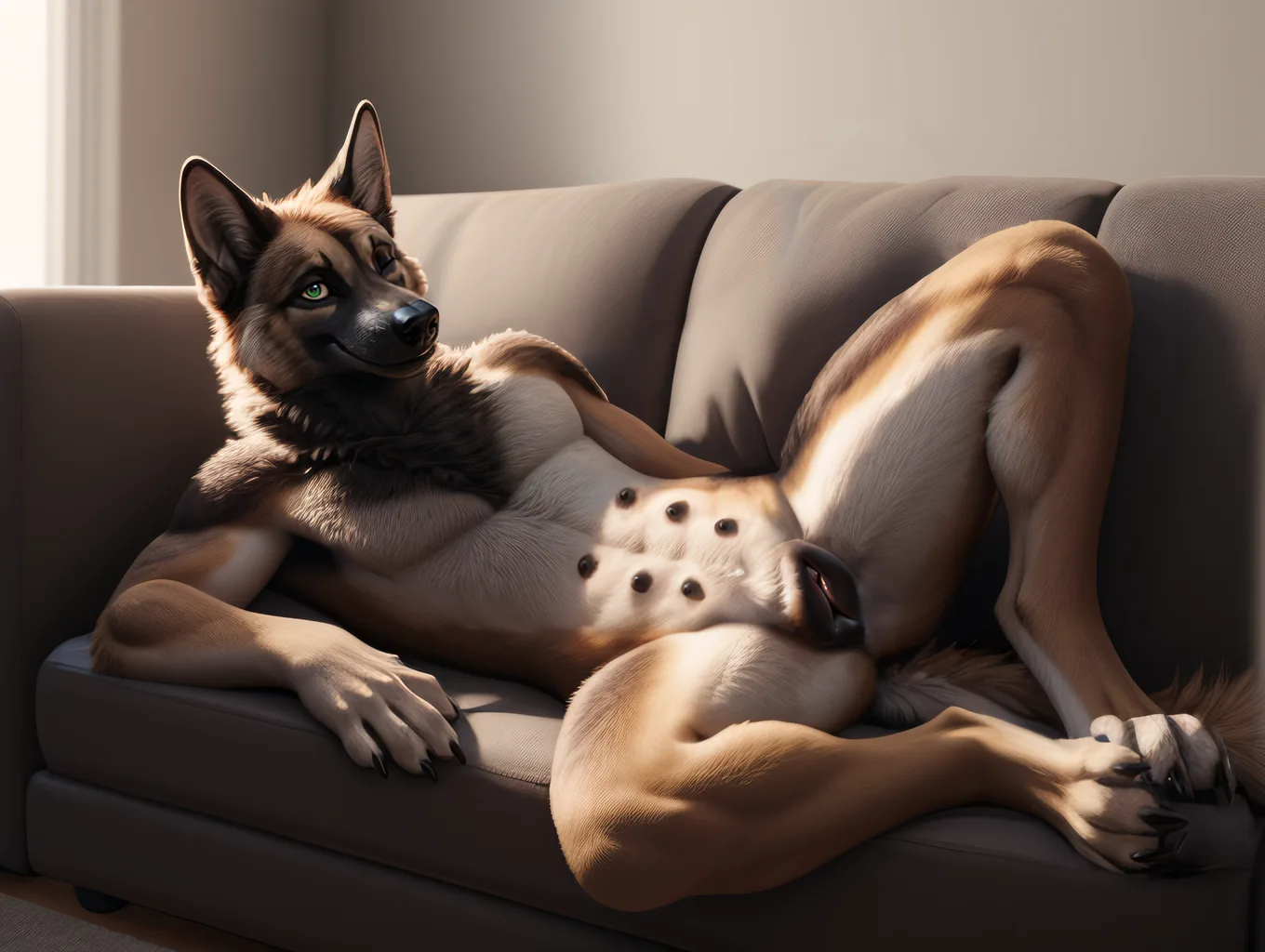 FluffyGermanShepherdBitchPresentingPinkPussyOnSofa | Yiff Party